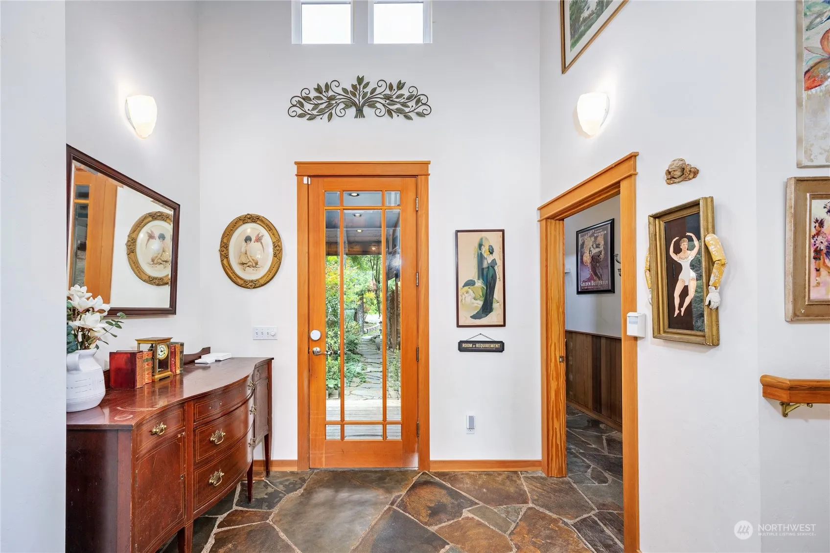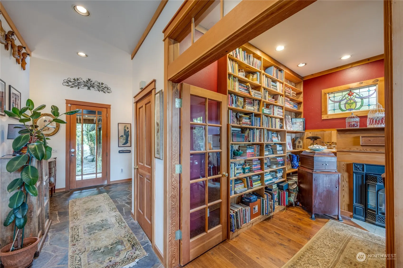 Savor the Puget Sound at this beautiful, waterfront home! Step through the gate into your very own secret Garden on Agate Pass. This custom built home is truly one-of-a-kind, with a classic Pacific Northwest craftsman interior. Slate floors and soaring ceilings will draw you in and a beautiful hearth greets you as you enter. Enjoy the primary bedrooms sweeping views, charming balcony, and cozy fireplace. The third floor offers seclusion as a retreat, studio, or home office, with its own private balcony facing the water. Relax after a long day with a soak in the hot tub, or dine al fresco on the newly built deck overlooking the water. Close to both Kingson and BI ferries, this captivating property is ready to be your cherished retreat!