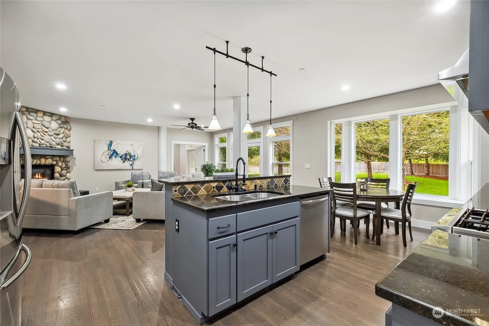 Indulge within this exquisite craftsman home, gracefully nestled in the highly sought-after River Run neighborhood. Featuring 4 bedrooms/3 baths sprawled across just over an acre, it embodies the quintessence of Pacific Northwest living, mere moments from downtown Maple Valley. Meticulously updated, featuring gleaming hardwood floors, luxurious granite countertops, a gourmet kitchen island with a dining area, and two cozy gas fireplaces. Revel in the allure of a freshly painted interior and exterior, alongside the elegance of a remodeled hall bathroom. A three-car garage offers ample space, while the expansive backyard, complete with a shed, garden, and fire pit, sets the stage for unforgettable gatherings. Your tranquil retreat awaits!