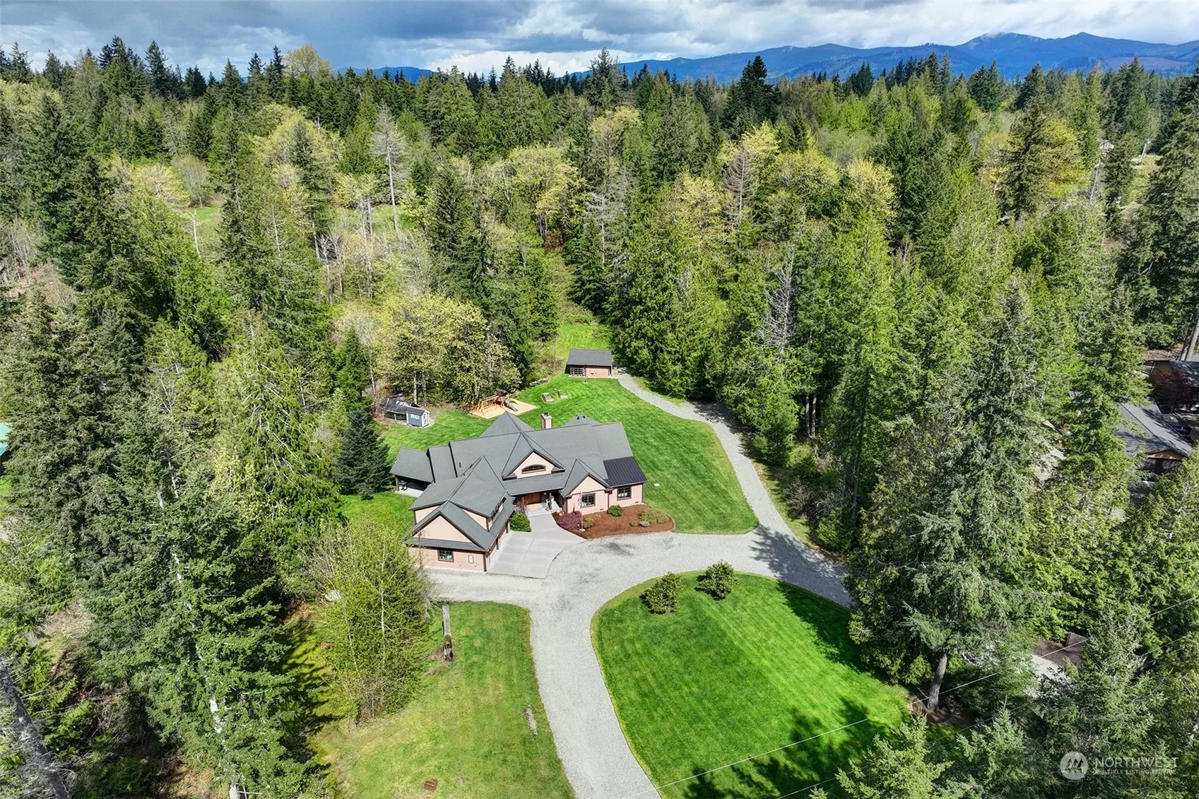 Exquisite 3,110 sq ft home on 3.33 acres of gorgeous property. Originally built as builder’s own–so many over&above features included. Glorious cathedral ceilings in foyer & living room. White oak floors & wood-wrapped windows showcase stunning views of surrounding landscape like nature’s art on the walls. Spacious kitchen w/granite surfaces & newer appliances, alongside dining & covered patio. Main floor primary ensuite w/heated bathroom floors. 3 more bedrooms. Huge Bonus room upstairs. Landscaped yard with chicken coop, shed, firepit, private well. Deep 2-car garage. A/C & generator too This unique home & property embody a perfect blend of comfort, functionality & natural beauty. Served by Tahoma School District. Preinspection available