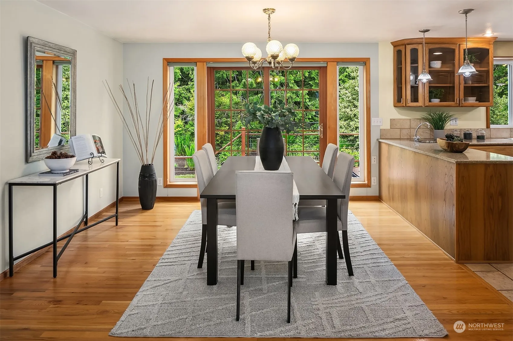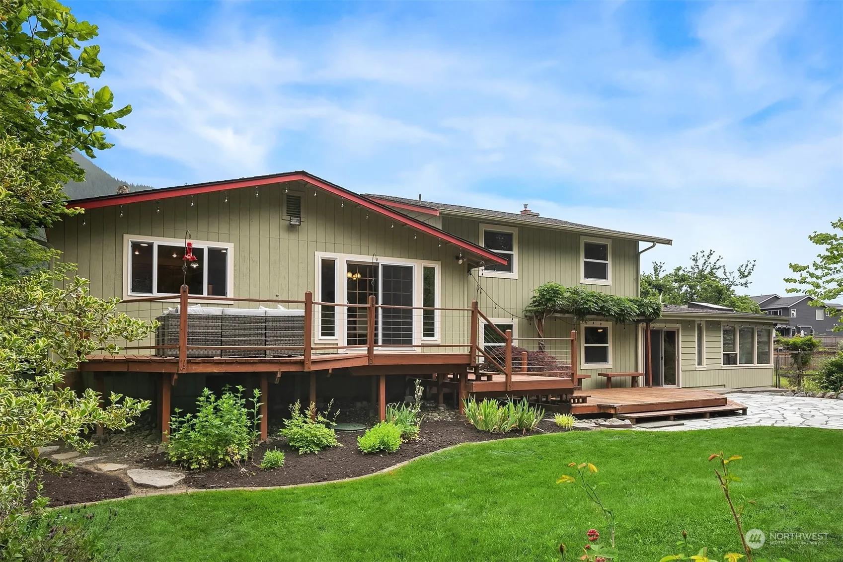 Mt Si View! Cul-de-sac location! Classic tri-level has gorgeous hardwood floors on main & upper levels. Upper updated baths have tile & granite counters. Main level has spacious Living and Dining rooms & Kitchen w/custom hickory cabinets, SS appliances, pantry, granite counters & tile accents. Lg Fam/Rec w/pellet stove, Office/Hobby rm, all tile 3/4 ba, Utility rm plus Sunroom/Exercise rm (formerly hot tub rm/wiring still in place) on lower level. 2-car Garage w/tons of storage & adjacent Shop. Back yd is private, has deck & stone patio, is completely fenced, has 2 storage sheds & fenced vegetable garden area. The grounds have been lovingly designed & maintained over the years. Easy I-90 access & minutes to recreational opportunities.
