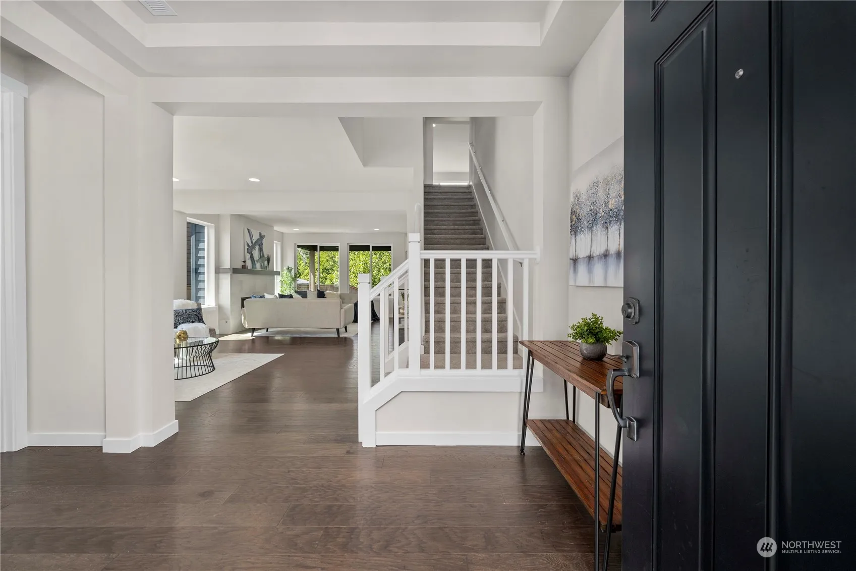 Welcome to the coveted River Glen neighborhood, Mt Si views & just minutes to charming downtown North Bend. This stunning Pulte home, featuring the desirable Roslyn floor plan, backs up to serene greenspace, offering unparalleled privacy and mountain views. The perfect floor plan includes 9’ ceilings, open-concept layout, a spacious island kitchen adorned with designer touches, main-floor office, a main bedroom with full bath. Enjoy an upper-floor bonus room. Seamless indoor-outdoor living with inviting covered patio & stay cool this summer with air conditioning. The primary suite overlooks the greenspace, features a 5-piece bath & walk-in closet. A short walk to Snoqualmie Valley trails, charming shops & restaurants. Sought after schools!