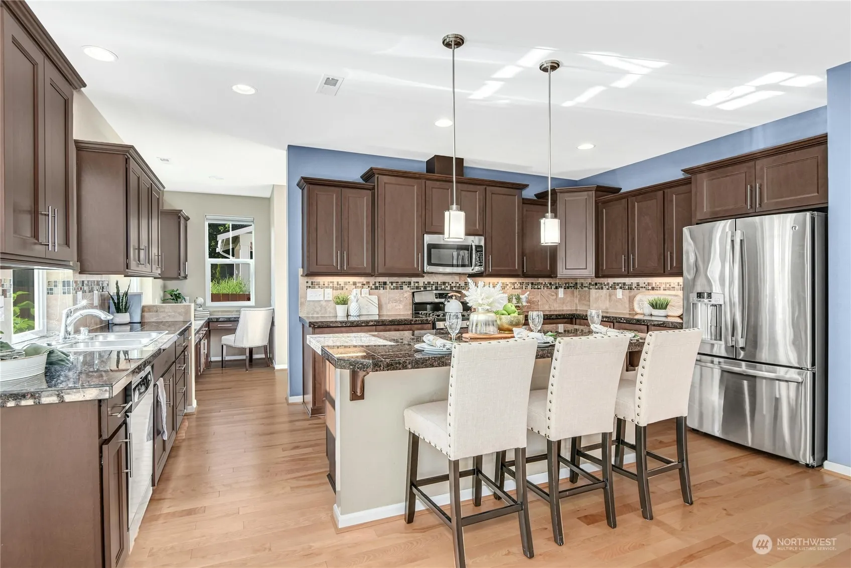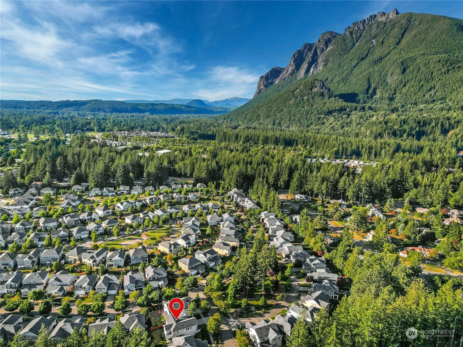 Offering stunning views of Mt Si out your front door this home in the coveted Cedar Falls Neighborhood is nestled across the street from one of the delightful parks. The open-concept great room w/hardwood floors, a cozy gas fireplace & a dining area are ideal for entertaining. The spacious kitchen includes a large island w/stainless steel appliances. A main floor bedroom w/adjacent ¾ bath makes an ideal guest room or den. Upstairs you’ll find 3 bedrooms, including a large primary suite w/five-piece ensuite & spacious closet. Enjoy the covered patio + fully fenced backyard. Escape the heat with A/C + front/backyard irrigation + new 50 year roof! Explore several community parks and trails all while being close to downtown amenities.