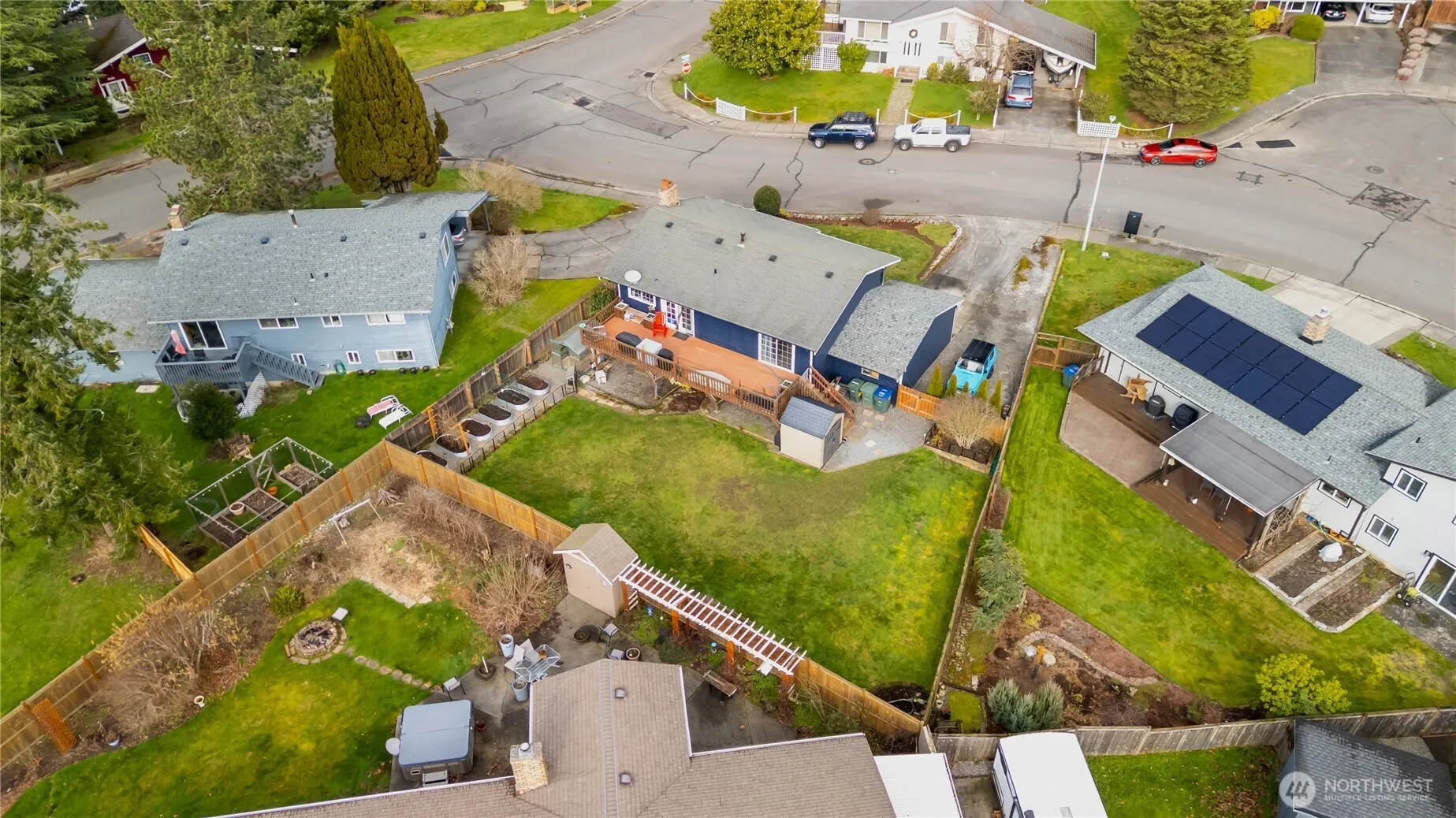 Beautifully updated and inviting, this comfortable split-level home on sunny Alabama Hill blends classic 1970s character with thoughtful care and maintenance. Offering 3 bedrooms, 2 bathrooms, with 1760 sq. ft. of living space, it sits on a quiet street with a generous, level lot. The light-filled living room features a wood-burning fireplace and a large picture window. A spacious deck extends off the main level, providing territorial views of the neighborhood. The upper level includes an expansive primary bedroom and a full bath. The lower level offers two additional bedrooms, a second full bath, and a large family room with a fireplace and direct access to the backyard. The fully fenced yard feels like a private retreat, complete with mature landscaping. This location provides easy access to Lake Whatcom, Whatcom Falls Park, Bloedel Donovan, Barkley Village, and nearby trail systems. The home has been meticulously cared for by its long-term owner.