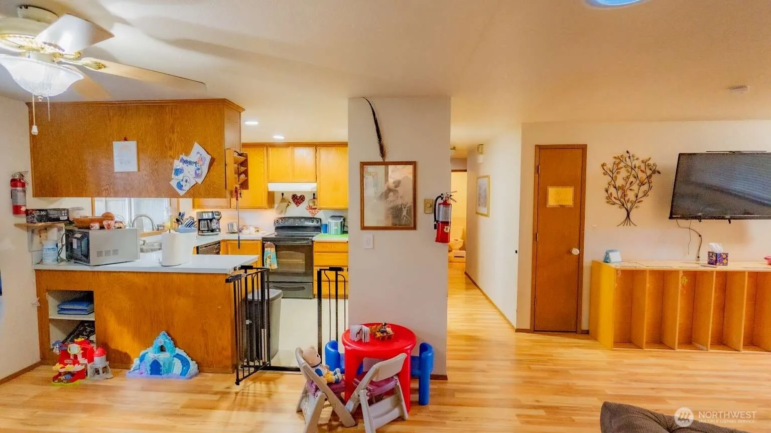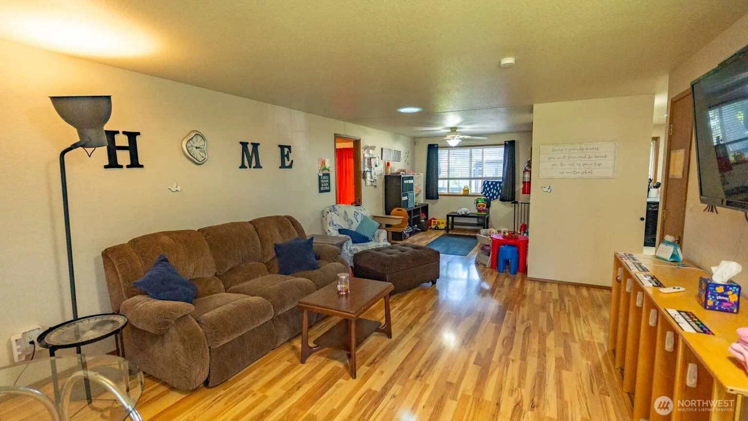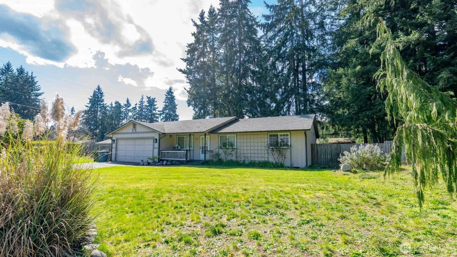 Spacious rambler on a large lot in a quiet cul-de-sac near JBLM. Cozy fireplace, ceiling fans, walk-in closets, primary suite on main, flex room & open layout. All appliances convey: washer, dryer, refrigerator & stove/oven. Private fenced backyard with mature fruit trees, deck, covered patio, hot tub hookup, RV parking & two outbuildings. No HOA. Large lot with ADU potential for added value. Close to schools, shopping & transit.