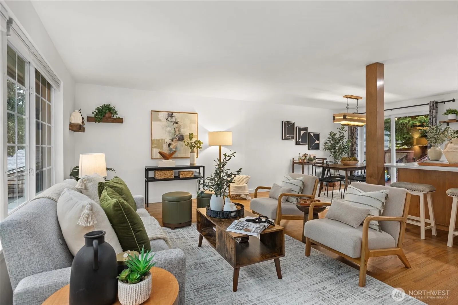 Fully remodeled Edmonds home on beautiful corner lot offers space, style and move-in ready living. The main living area was reimagined with the addition of a structural beam, creating a bright open-concept layout between the kitchen, dining, and living spaces perfect for entertaining and everyday living. The updated kitchen features stylish finishes and flows seamlessly into the heart of the home. Hardwood and luxury vinyl plank flooring run throughout. Complemented by beautifully remodeled bathrooms, custom closet organizers and a spacious primary w/ en-suite. Lower level offers expansive living room with potential for 4th room/office, large laundry and 1/2 bath. Outdoor living is equally impressive with a Trex deck, bonus patio, and fire pit area ideal for relaxing evenings or gathering with friends. The expansive 1/4 acre property is fully fenced and offers exceptional privacy along with a large garage, brand new asphalt driveway, and additional gravel parking with room for RVs, boats, or hobbies. Full tear off and replaced roof, new water heater, insulated garage doors w/ smart openers and bonus garage heater makes great shop space. Fully inspected, professionally cleaned, landscaped, and staged, this home is truly move-in ready. Located just minutes to downtown Edmonds, waterfront parks, dining, shopping, and commuter routes. The perfect balance of privacy, convenience, and modern living! 1 Year Home Warranty included!
