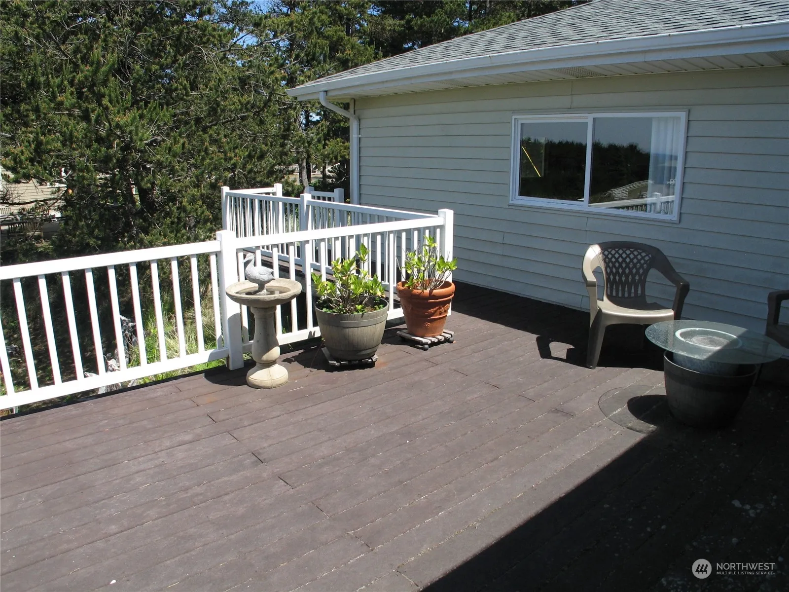 Come view this well-kept home high on the ridge of K Place. Impeccable wood flooring on the main floor. Lots of room for all your guests with light and bright bedrooms and extra rooms in the daylight basement . This home is equipped with central vac. On those nice days sit on the large deck facing west to the ocean!! Two fireplaces and new heat pump and forced air furnace to keep you warm on those winter nights. Oversized finished double garage for the cars and beach toys. Extra large lot with a 60 foot easement to the north for lots of elbow room ! New roof also . Call your Broker to view this home !
