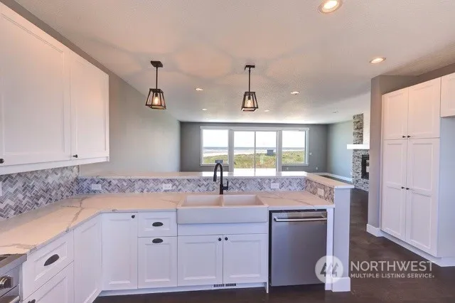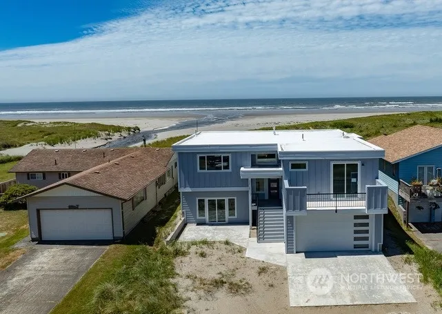 NEW OCEAN FRONT BEACH HOME with possibly the best commanding OCEAN SURF AND BEACH views on the Peninsula, and OWN TO THE MHT! Enjoy 4 spacious bedrooms and 3 bathrooms with a second bedroom/office on the main level with a private east facing balcony morning sunrises/wind sheltered seclusion. The homes spacious combination Living, Dining and Kitchen areas have front and center 180 degree views. Primary bedroom with a propane fireplace enjoys the same views and shares the 12’x46’ full length deck.This rare location offers unique views of the creek like outlet of the nearby canal offering stunning sun lite images and reflections with ample wildlife including Soaring Bald Eagles enjoying the outflow of water towards the oceans salt water.