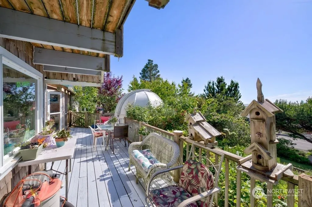 An original home built in 1976 with an Observatory to stargaze by moonlight; a Turet that overlooks the ocean;, primary bedroom that faces west for those gorgeous sunrises and sunsets. This home has a tower that offers two rooms plus a third story that offers unparrelled views of the ocean and a quiet place to just….sit. In addition, there is a “hot” atrium room, great for growing plants. All this and an oversized garage to store your cars and a shop that expands 20×40 (an old racquetball court). Front yard boasts a firepit for those star filled nights and of course, it is a mear 10 min walk to the ocean. A deck graces the entire front of the home. This house is sold as is.