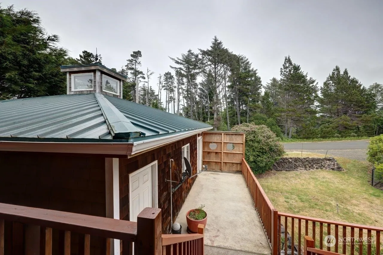 First time on market! Custom built 4 bedroom home on west side awaits new owners. This 2 story home sits on a 1 acre parcel with 2 2-car detached garages. The second garage is approximately 784 square ft. The home has a generator hard wired and has a automatic transfer switch. There is a primary bedroom on main floor with 3/4 bathroom and walk-in closet. 3 spacious bedrooms downstairs. there’s a wrap around deck. Cedar shake siding and metal roof. There is a watering system with devoted well for watering lawn. Home is connected to North Beach Water and a 4 bedroom septic. Home is heated by a multizonal hot water heating system with domestic hot water on demand. Pacific Pines State park and ocean beach access is just a block away!