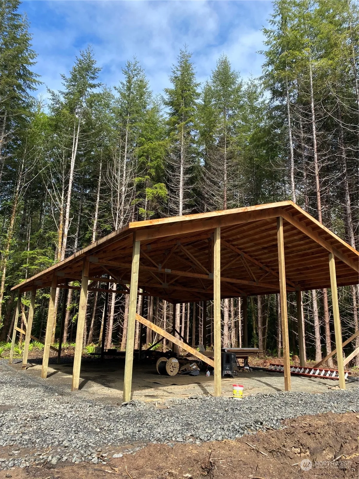 Hard to find private and secluded 5 acres +/- River front all the leg work has been done, building permit for unfinished 56×40 shop. Seller to provide septic design permit prior to closing, well permit has been issued and deposit paid to well driller to be forwarded on to Buyer. Gated driveway and power already installed. Building site cleared property has mature 30-40 year old fir trees.