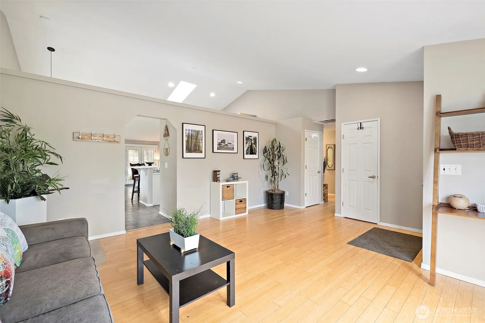 Welcome to this one-of-a-kind elevated, 3 bed/2 bath, rambler offering stunning Olympic Mountain views. This spacious single level home features vaulted ceilings and an open concept design connecting the updated kitchen with refreshed cabinetry to a light filled living room with bay window and skylights. The private primary suite includes a walk in closet and full bath. Enjoy a new roof, fresh paint, and air conditioning. Entertain on the oversized deck and pergola patio with gas firepit in a fully fenced backyard with no HOA. Turn the key and step into something truly special. As an extra bonus, the home has 600 sq/ft of storage space under the house.