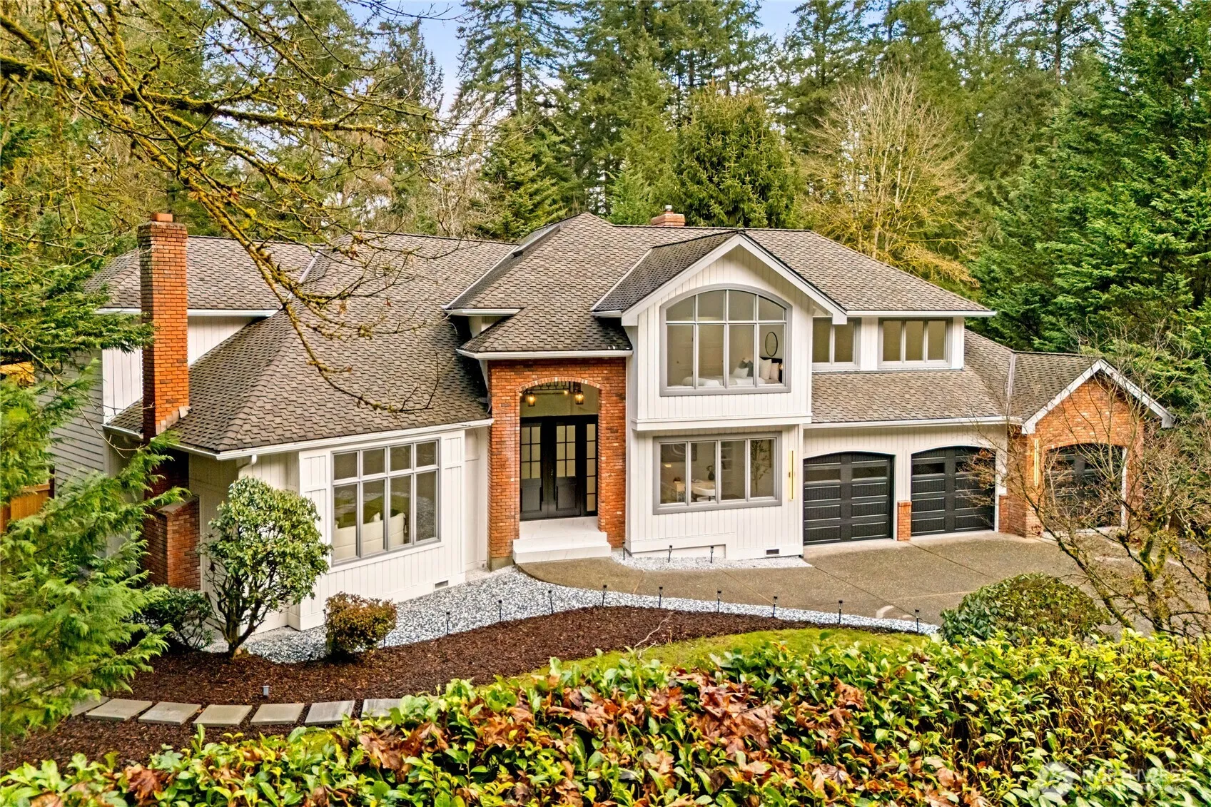 Discover uncompromising elegance in The Crossings, one of Woodinville’s most desirable enclaves. Renowned for privacy and prestige. This extraordinary estate impresses with a presidential roof, grounds, cedar-wrapped tiled entry, and bespoke steel front door. Inside, soaring vaulted ceilings, wrought-iron railings, and engineered flooring create a striking impression. The grand living room features a tiled fireplace and flows into a formal dining space and a chef’s kitchen with dual waterfall Taj Mahal stone peninsulas, custom cabinetry, double ovens, gas cooktop, smart refrigerator, and pantry storage. Exquisite finishes elevate every detail. The kitchen opens to a refined family room with built-ins, lighting, and fireplace, extending to an expansive Trex deck overlooking the private fenced grounds. The main level offers an executive office, designer powder room, and custom laundry. Upstairs, the primary suite is a sanctuary with vaulted ceilings, a lavish retreat designed for indulgence, and spa bath featuring heated floors, freestanding soaking tub, illuminated mirrors, designer shower, and walk-in closet. Three bedrooms and a bonus room provide comfort. Complete with epoxy 3-car garage, A/C, and generator readiness, minutes from wineries including Chateau Ste. Michelle Winery, this residence defines prestige and timeless NW sophistication.