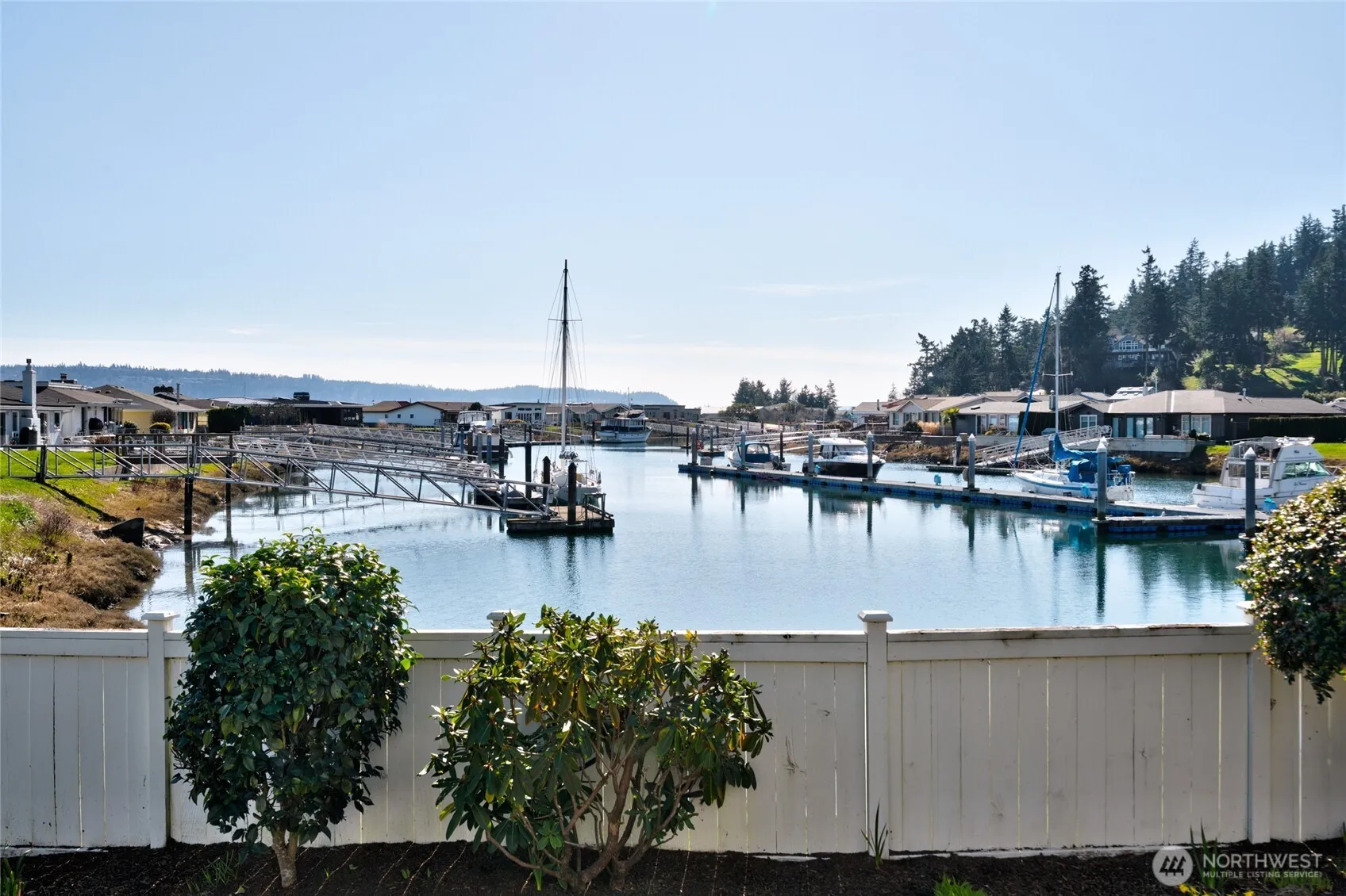 Experience waterfront living at its finest in Mariners Cove on North Whidbey. Perfectly positioned at the end of a serene canal, this fully updated view residence reflects exceptional craftsmanship, curated finishes, and a design centered on effortless main-level living. Rich solid wood floors flow throughout the home, which offers two bedrooms, den, and a light-filled view loft — ideal for entertaining or welcoming overnight guests. The gourmet kitchen is beautifully appointed including high end appliances, granite countertops, and sophisticated detailing that seamlessly blends form and function. The primary suite is a spa-inspired sanctuary, featuring a deep soaking tub, jetted shower, and custom California Closets system — as are all closets throughout the home for elevated organization and design continuity. French doors open to the view deck and hot tub. Outdoor living is equally impressive. The expansive view deck is equipped with multiple gas hookups for a BBQ, fire table, and crab cooker — perfect for gathering after a day on the water. Enjoy convenient access to the community dock next door (space available basis) or two boat launches for crabbing and fishing in the scenic waters east of Whidbey. A spacious storage shed offers ample room for kayaks and seasonal gear. Take a short walk to the community beach or sport court, or unwind in your own beautifully landscaped waterfront retreat.
