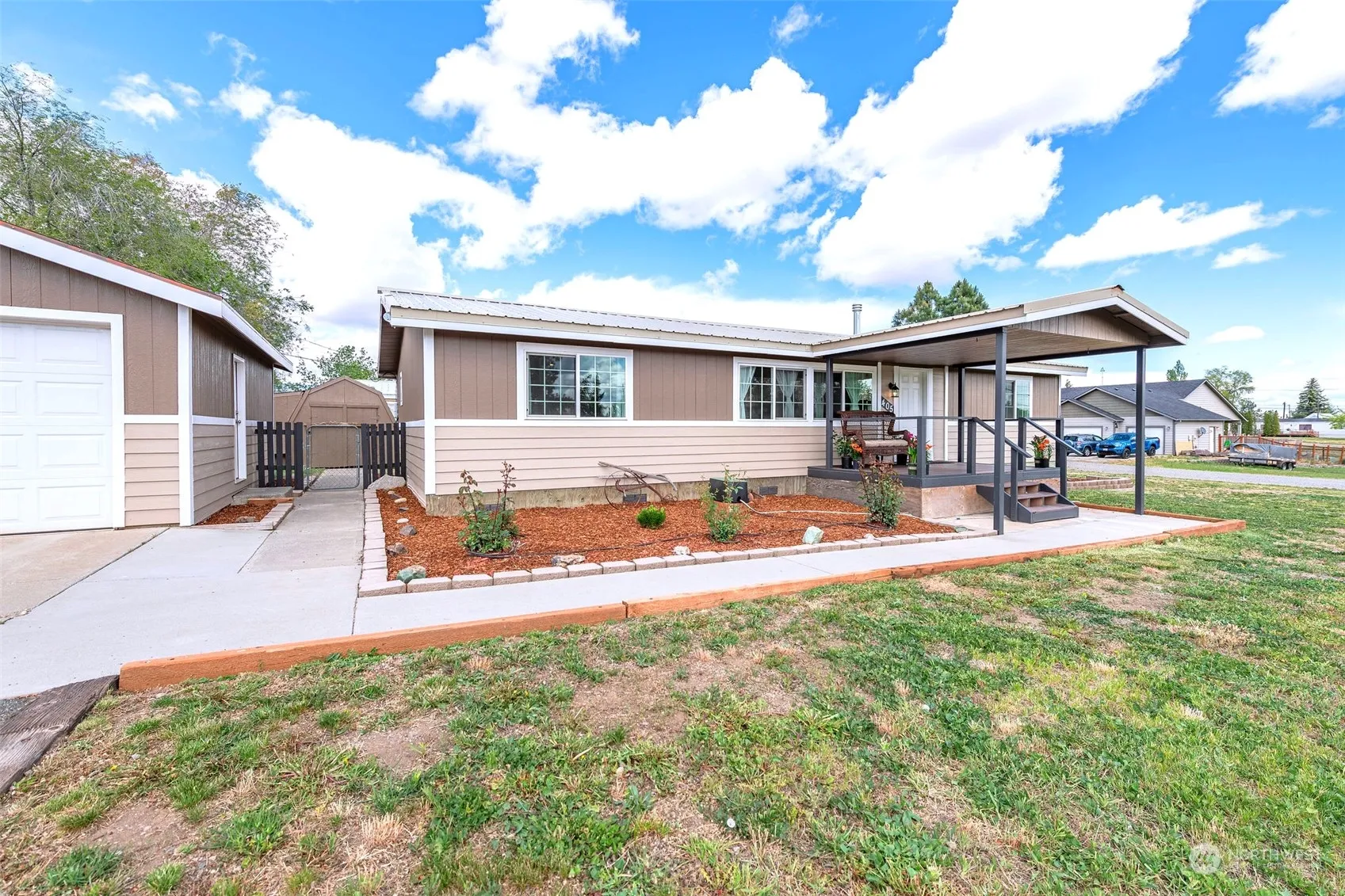 Turn-Key Rambler in a peaceful small-town. Ideally located in a serene setting, only 30+ minutes from all of the fun NCW has to offer! So many updates throughout this freshly painted home, which sits on a quiet corner on nearly a 1/3 of an acre lot. Enjoy a nice sized Primary bedroom with a sizeable walk-in closet and a full ensuite bath. There are 2 additional bedrooms and another updated and adorable full bath! Bright and light open concept living throughout the modernized kitchen, dining and living room. Plenty of room for storage Etc. with a 2-car garage and several outbuildings. Sit out on the sweet front porch or enjoy the privacy of a fully fenced backyard. This home is so well maintained and ready for it’s new owner to enjoy!