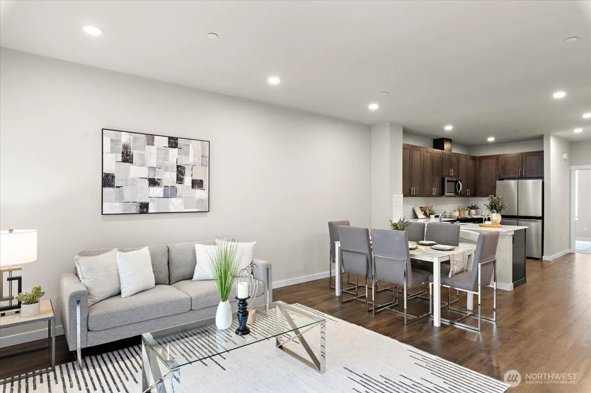 Welcome to Grayson Square, a beautifully designed townhome community in the highly desirable Silver Lake neighborhood. This corner-lot “Caitlin” floorplan offers 3 bedrooms with a main-floor bedroom featuring a private 3/4 bath perfect for guests or multigenerational living. Upstairs, you’ll find a spacious master suite and a second bedroom, both with abundant natural light and generous closets. Built in 2023, this move-in-ready, light-filled home features modern finishes throughout, including a sleek open-concept living area, a kitchen with stainless steel appliances, and a beautiful deck ideal for relaxing or entertaining. The main level bedroom space offers flexible living options perfect as a media room, home office, or guest retreat. Conveniently located near major commuting routes, including I-5, WA-525, WA-99, and I-405, and just minutes from shopping, dining, parks, and entertainment, this townhome provides the perfect combination of style, comfort, and convenience. With thoughtful design, versatile living spaces, and a prime Silver Lake location, this home is ready for you to move in and enjoy the best of modern townhome living. Don’t miss the opportunity to make this stunning property your own!