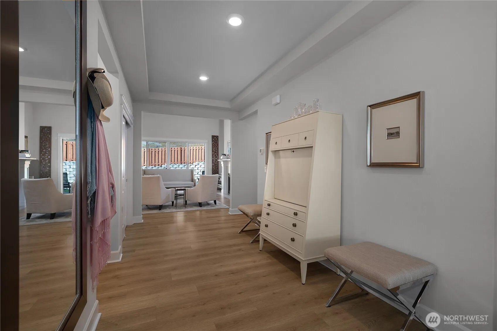 Like-new Walnut plan — kitchen pristine, all upgrades included, move-in ready today. Large lot, no neighbors behind, no street noise to mind. More windows add natural light filling the great room and kitchen. The oversized island is the perfect gathering spot. For the cook — pull-out trays and recycling where you need them. Enjoy coffee near the gas fireplace, fully trimmed with mantel. Double sliding glass doors — no longer in new construction — open to a covered patio w/gas hookup. A primary en suite includes a 5-piece bath. Custom window treatments + LVP flooring throughout. 2,276 sq ft | 7,586 sq ft lot | 10-year structural warranty. Indoor pool, pickleball, fitness center, preserve trails and dog park.