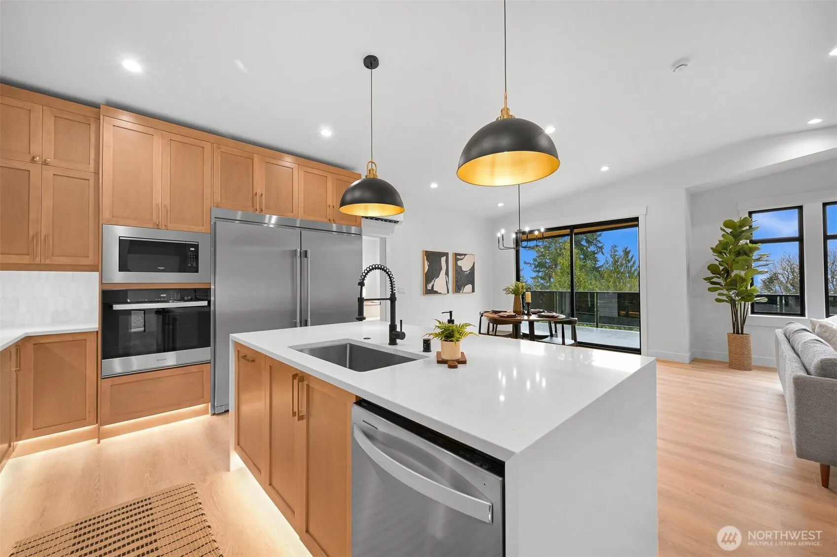 Stunning new construction offering exceptional flexibility and refined design throughout. The lower level provides a highly adaptable space that can serve as extended family living or be easily transformed into a fully self-contained ADU, complete with a private entrance, full kitchen, washer and dryer hookups, built-in wine fridge, and sink—perfect for guests or multigenerational living. Just off the garage, an additional finished room adds even more versatility, ideal for a home gym, media room, hobby studio, or ample storage. Upstairs, the thoughtfully designed main living area blends comfort and sophistication. A chef-inspired kitchen features high-end stainless steel appliances, abundant cabinetry, and generous counter space, flowing seamlessly into a bright living room anchored by a gas fireplace with striking floor-to-ceiling stonework. The primary suite offers a peaceful retreat with a spa-like ensuite bath and spacious walk-in closet. Outdoor spaces are equally inviting, showcasing tasteful hardscaping, additional lower-level parking, and two expansive decks with sweeping territorial and bay views—perfect for relaxing mornings, outdoor dining, or entertaining. With upscale finishes, modern amenities, and flexible living options, this home is designed to suit a wide range of lifestyles. BONUS FOR BUYERS: The seller is offering a 2/1 rate buy down, with the first-year rate at just 3.99% ask your agent for more details.