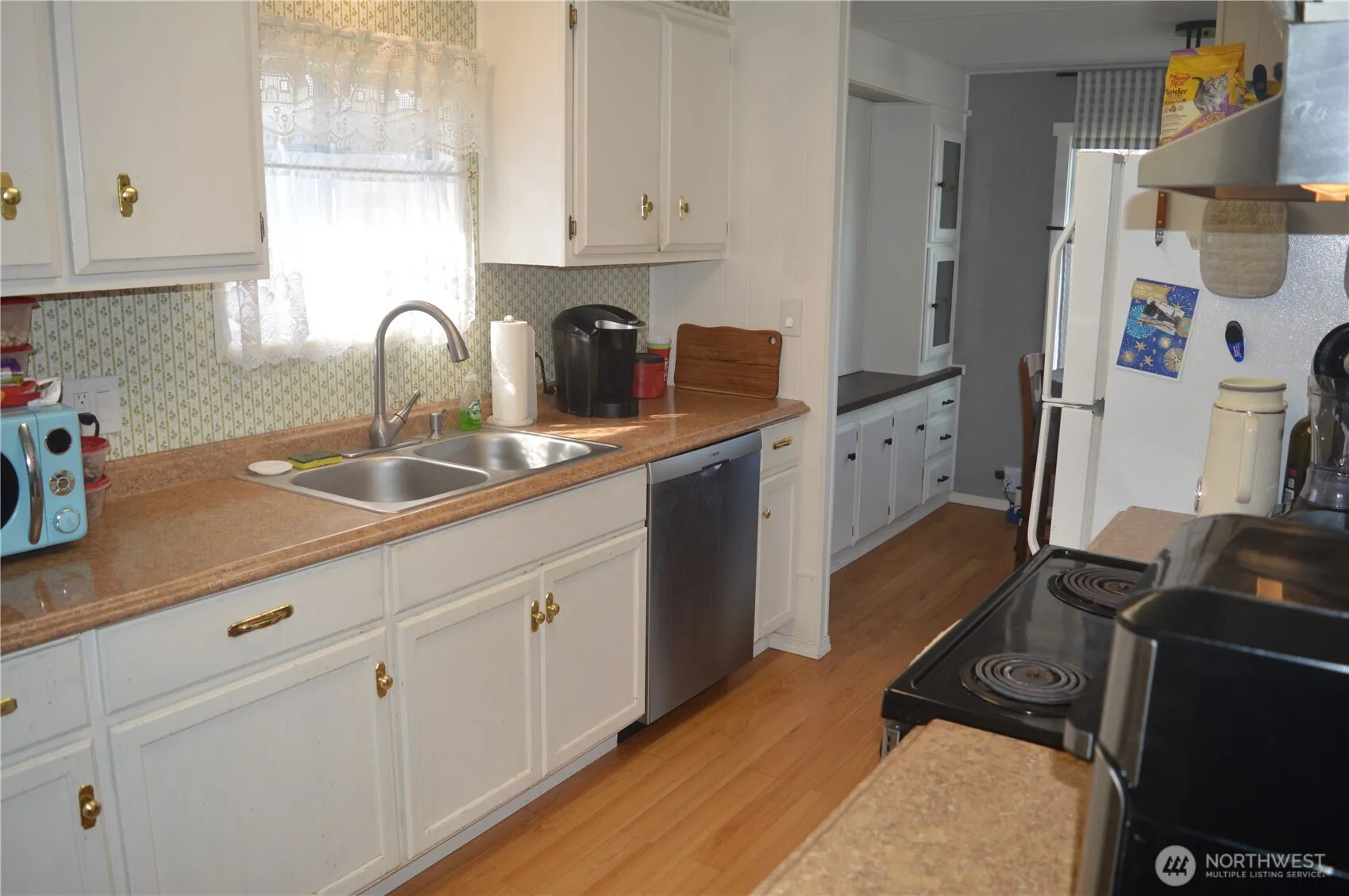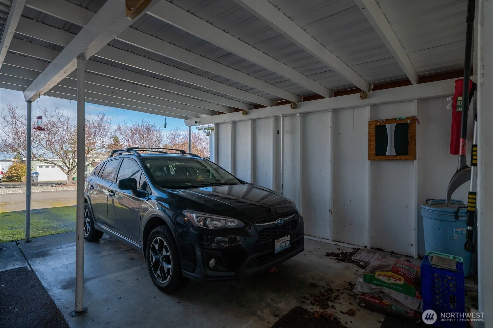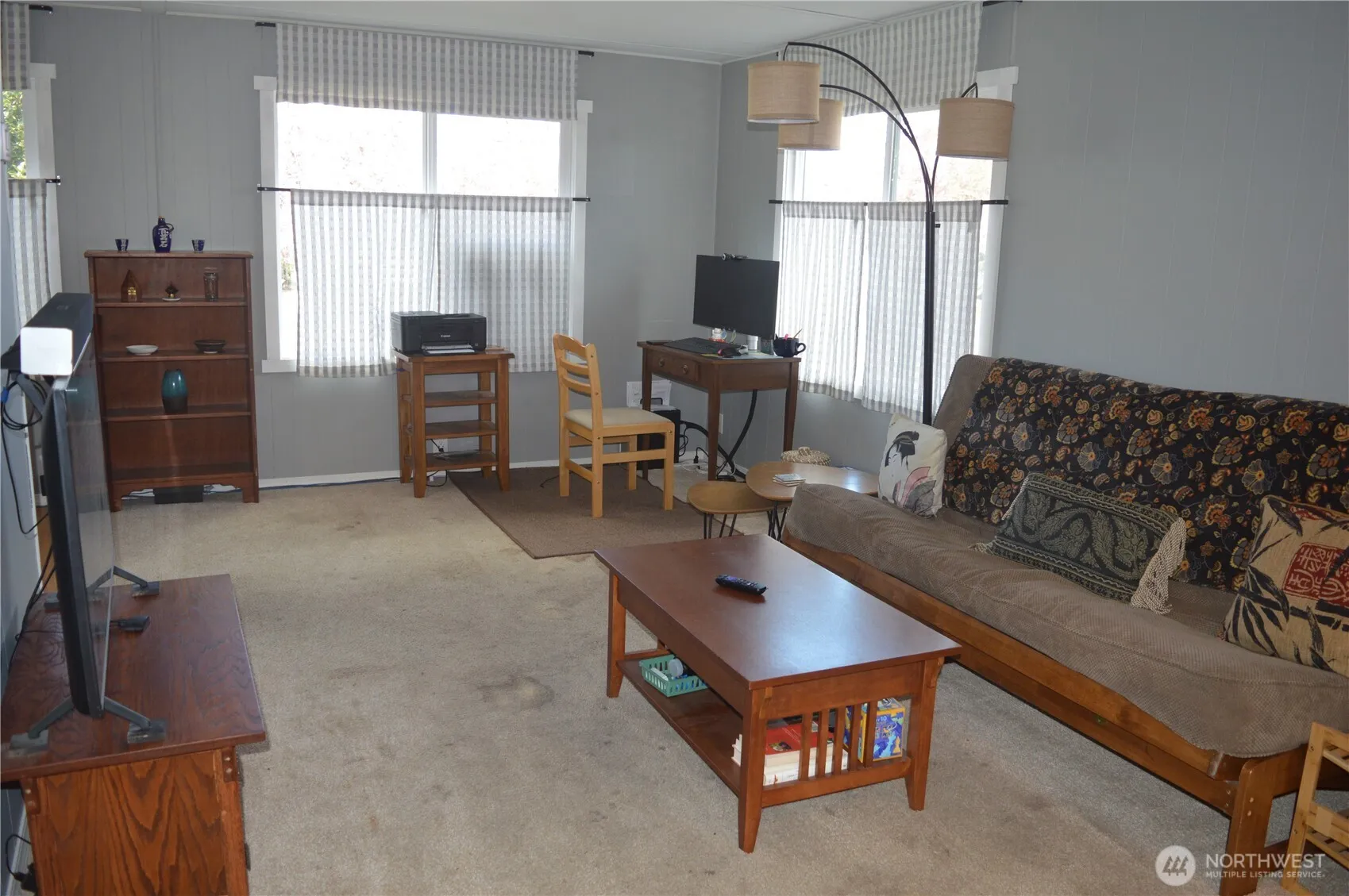 Opportunity to live in a 55+ community with little yard maintenance. Enjoy the proximity to shopping, medical & town amenities. This home is 2 bedrooms & one bath. Each bedroom has a walk-in closet. it is currently set up as a Jack & Jill closet. Living room has lots of large windows. Lovely dining room with built-in cabinet. Space rent includes, water, sewer, and trash pickup. Carport has convenient storage shed/shop/hobby room & there is an additional storage shed behind. Plenty of covered space. Located behind Safeway. D Spruce East is a NO DOGS park. Loans avail.