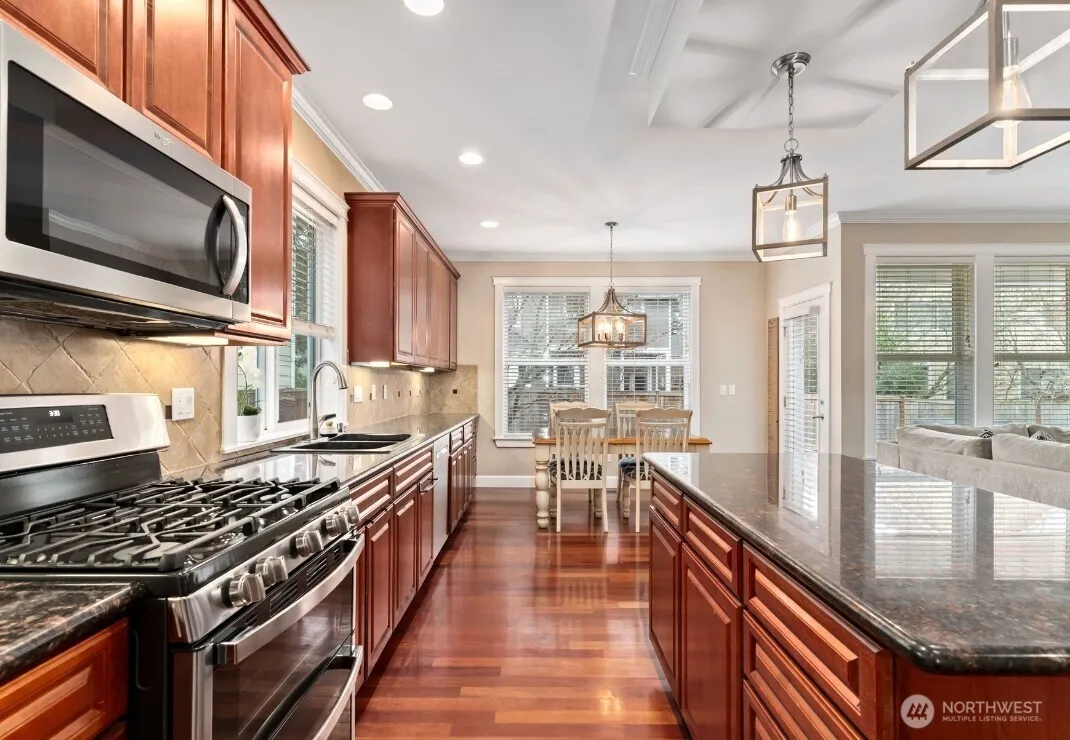 Spacious, versatile, and beautifully refreshed, this 5 bedroom + 2 flex room home with a rare 3 car garage stands out in the desirable Ashton Woods neighborhood of Bonney Lake. Offering 2,913 sq ft and 2.5 baths, this move-in ready home provides the space and flexibility today’s buyers are looking for. The functional layout features real hardwood floors, an open concept living area, formal dining space, and a well-appointed kitchen with double oven, stainless steel appliances, and abundant cabinetry for exceptional storage. The kitchen nook and flexible floor plan make everyday living and entertaining effortless. With five true bedrooms plus two dedicated flex rooms, this home offers seven separate rooms to grow, host, or comfortably work from home. The spacious primary suite includes dual vanities, soaking tub, and walk-in closet. Recent updates include brand new carpet, fresh interior and exterior paint, new garage door (installed 3/5/26), and newer water heater, allowing the next owner to move in with confidence. Enjoy a fully fenced backyard with stamped concrete patio and covered outdoor space ideal for entertaining or relaxing year-round. Surrounded by neighborhood amenities including a dog park, multiple playgrounds, and basketball court, this home combines everyday comfort with convenient recreation. Well maintained, thoughtfully updated, and offering exceptional versatility, this Ashton Woods home is ready for its next chapter