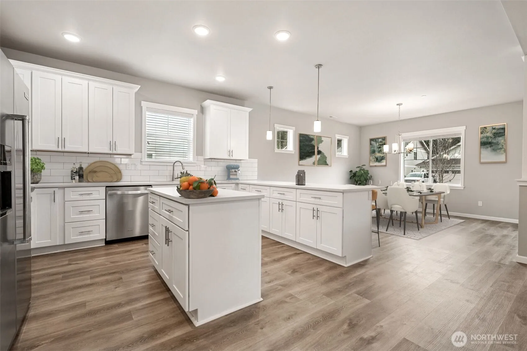 Welcome to 3642 22nd Ave NE in Olympia, WA — a perfectly located, like-new home in The master planned, Village at Mill Pond. This home offers modern design & flexible living space, with a main floor bedroom & bath, providing ideal separation for multi- generational living or guests. Built with comfort & functionality in mind, the “Laurel” model features 4 bedrooms total plus the spacious upstairs bonus/flex room is perfect for a home office, playroom, or media room. The semi-open-concept floor plan down creates easy flow between the entry, living room, dining area, & eat-in kitchen. The large chef’s kitchen is designed for both everyday living & entertaining, showcasing a generous prep island, quartz countertops, brushed nickel hardware, & abundant cabinetry. Upstairs, the primary suite offers a private retreat with a walk-in closet & a luxurious 5-piece bath. Two additional bedrooms, a full guest bath, & a conveniently located upstairs laundry room complete the second floor. Additional features include central A/C, two-car garage w/alley access, & a fully fenced backyard w/storage shed, on a corner lot. The Village at Mill Pond offers beautiful walkable sidewalks w/ access to community parks & green spaces & direct proximity to the Chehalis Western Trail for miles of walking & biking. Convenient access to I-5 & JBLM. If you’re searching for a move-in ready home in Olympia with a main-floor bedroom, bonus room, fenced yard, & modern upgrades — this one checks all the boxes.