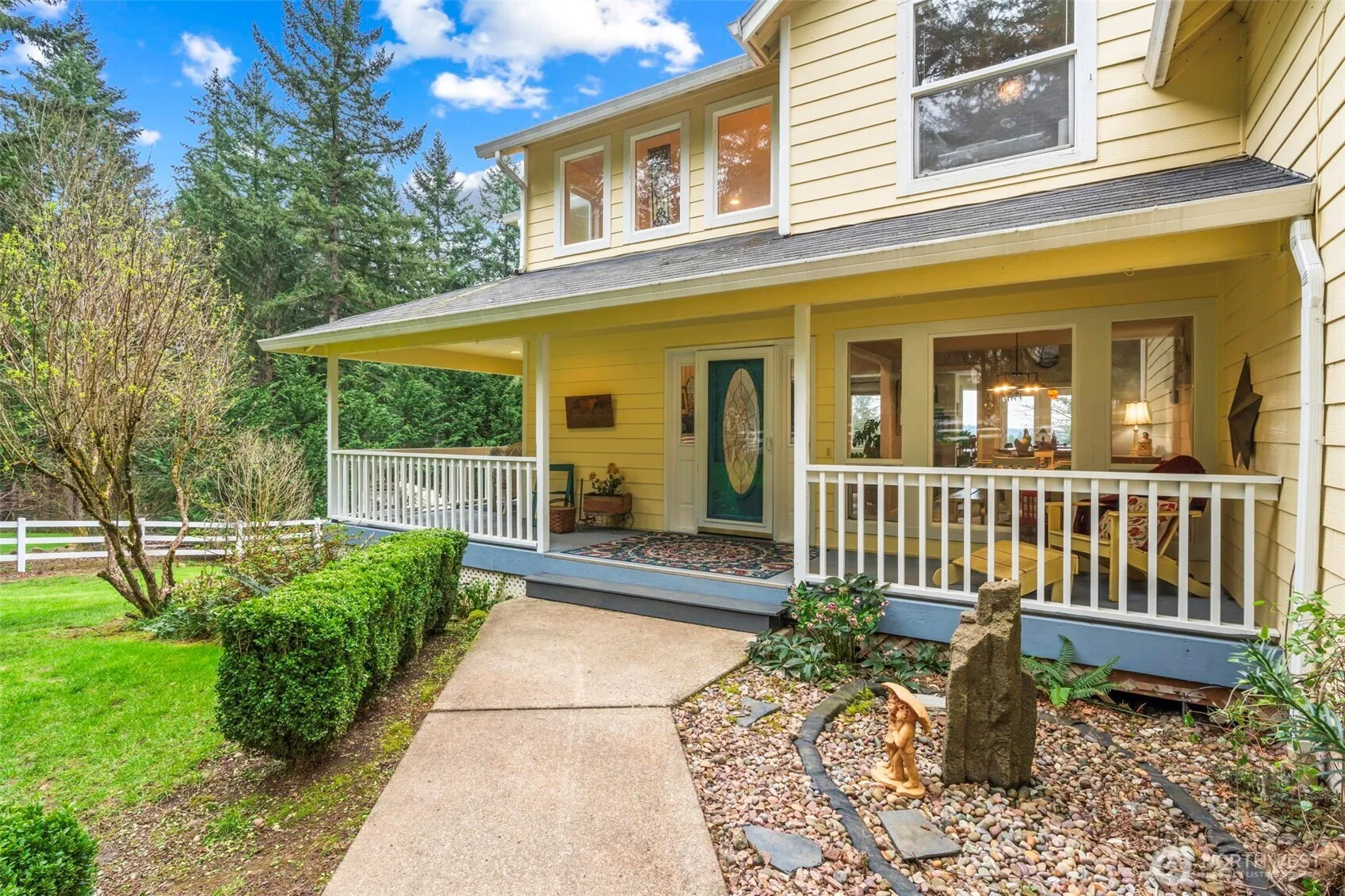 Battle Ground WA home on acreage featuring a fully fenced 3.2-acre setup with barn, garden space, and homestead-ready infrastructure. Located in Clark County with convenient access to Vancouver WA and Portland OR, this property offers a balance of rural living and regional connectivity. The 3-bedroom, 2-bath home includes approximately 2,100 square feet and features a brand new roof, updated kitchen appliances including a gas downdraft stove and newer dishwasher, along with new LVP flooring on the main level. The primary suite includes a remodeled bathroom with jetted tub, updated shower, and vanity. Living spaces include a media room with surround sound wiring and a wood-burning stove with Lopi Freedom insert. Outdoor features support hobby farm and equestrian use with a 4-stall barn, tack room, workshop space, greenhouse, raised garden beds, and chicken coop. Additional improvements include a wraparound porch, refreshed upper and lower decks, fire pit area with lighting, and multiple outbuildings. The property is serviced by well and septic, with HVAC and propane-supported systems. Using a preferred lender, a 1% lender-paid buy down may be available for qualified buyers with conventional financing, which can reduce monthly payments during the first year. Territorial views and usable land create flexibility for animals, gardening, or recreational use in Southwest Washington.