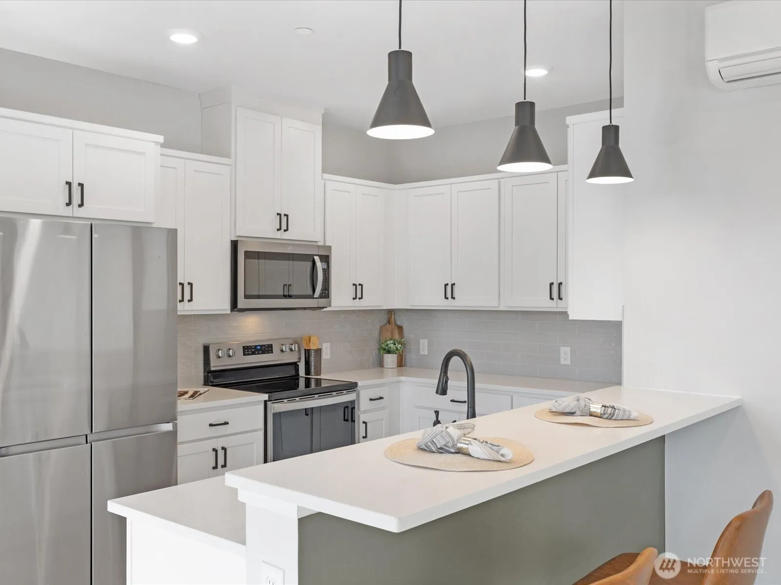 Better than new modern townhome in desirable Lake Stevens/Marysville area! This beautifully maintained 3 bedroom home with bonus loft and 2.25 baths offers comfort, style, and convenience in one exceptional package! The open concept main level is designed for modern living, featuring a spacious kitchen with quartz countertops, custom pantry organizer, and seamless flow into the living room – perfect for entertaining or relaxing at home. Custom closet systems throughout provide exceptional storage and organization, while ductless mini-splits deliver efficient zoned heating and air conditioning for year-round comfort. Upstairs, the versatile loft space is ideal for a home office, media room, or additional lounge area. The upper level also offers newer carpet in the bedrooms, durable LVP flooring, and a conveniently located laundry room. Retreat to the expansive primary suite, complete with soaring ceilings, a relaxing sitting area, and ensuite bathroom designed for unwinding at the end of the day. Enjoy the privacy of your own 2 car garage and embrace a hassle free lifestyle. HOA dues cover all yard maintenance. Just minutes from local shops, dining, and easy access to Hwy 9, Hwy 2, and I5. This home offers the perfect balance of luxury and low maintenance living.