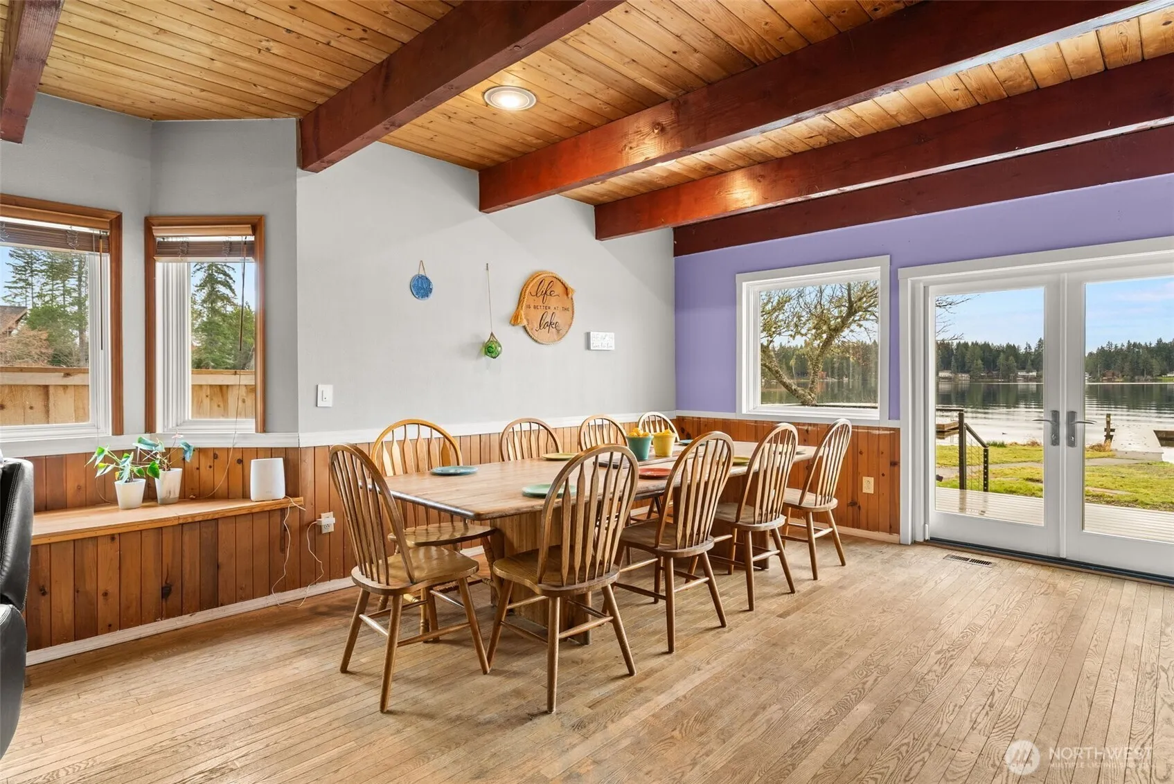 Custom No-Bank Lakefront Retreat with Panoramic Views, Private Dock & Oversized Shop. Discover the ultimate lake lifestyle in this custom home perched on prime no-bank waterfront. With direct, level access to the water & unobstructed panoramic views, every day feels like a vacation. Breathtaking, ever-changing lake views from nearly every room; wake up to sunrise over the water from this 3 bedroom 2.75 bath residence which is highlighted by a massive gourmet kitchen. Expansive lakeside deck – your outdoor living room – perfect for al fresco dining, morning coffee or hosting sunset gatherings. Bright, airy sunroom bathed in natural light, offering year-round enjoyment of the lake vistas. Massive temperature controlled 3 stall shop/garage with abundant storage and workshop potential – ideal for hobbyists, boat/RV storage or ultimate bonus space.
