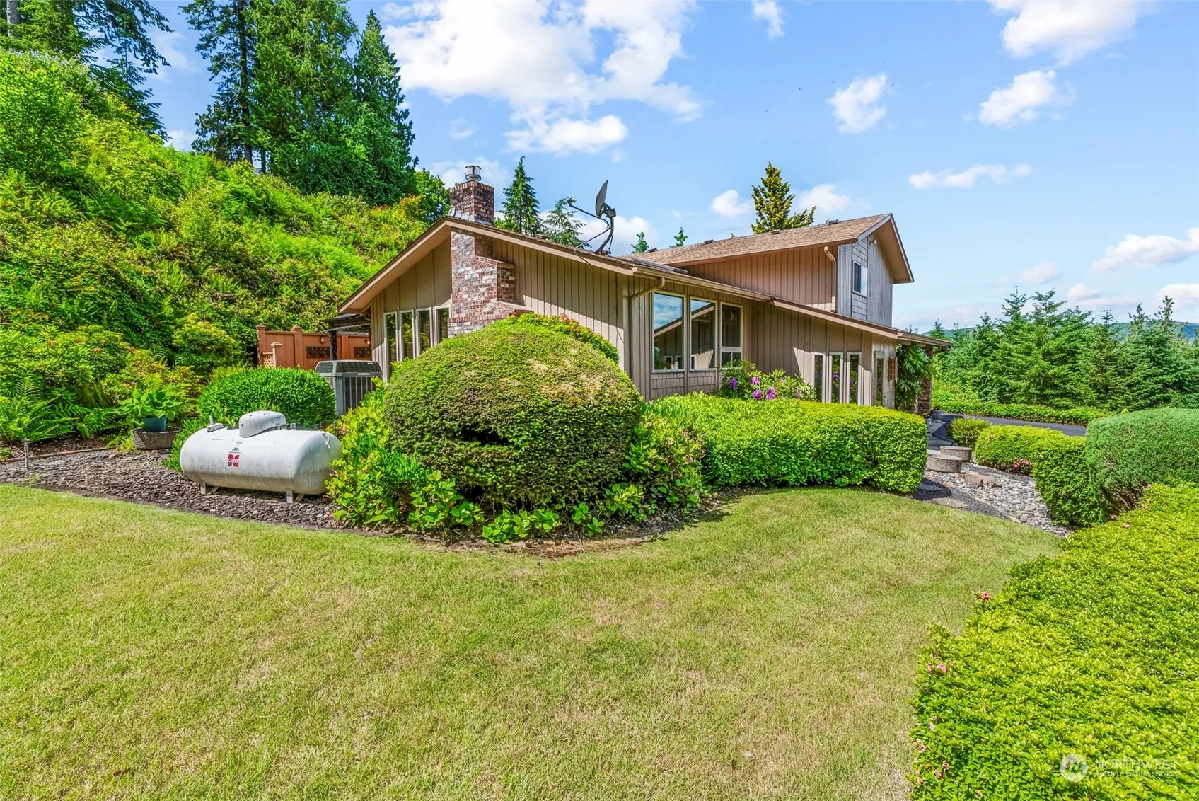 You’ll love this beautifully built, 2400+ sq ft home, boasting mature and manicured landscaping! The extensive blacktop keeps your car clean. The daylight basement features a wood shop and hobby room. The main level, with its vaulted ceilings and skylights, is highlighted by a magnificent brick propane fireplace. Lots of windows that provide great natural light. The spacious kitchen includes top-of-the-line appliances and attractive cabinets. Off the dining room, glass doors lead to a Trex deck with a cozy eating area under a gazebo. The primary bedroom is generously sized with a large walk-in closet. WOW, the 4 bay (propane heated) shop is a dream! With too many upgrades to list, you need to see it, love it, and buy it!