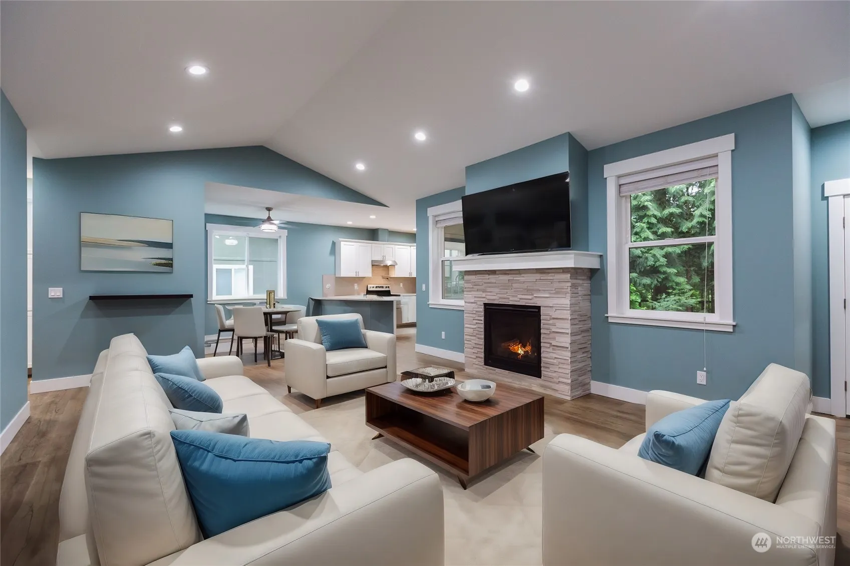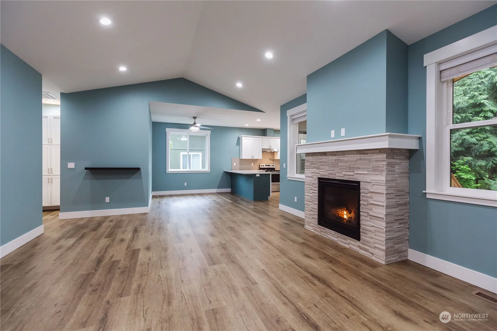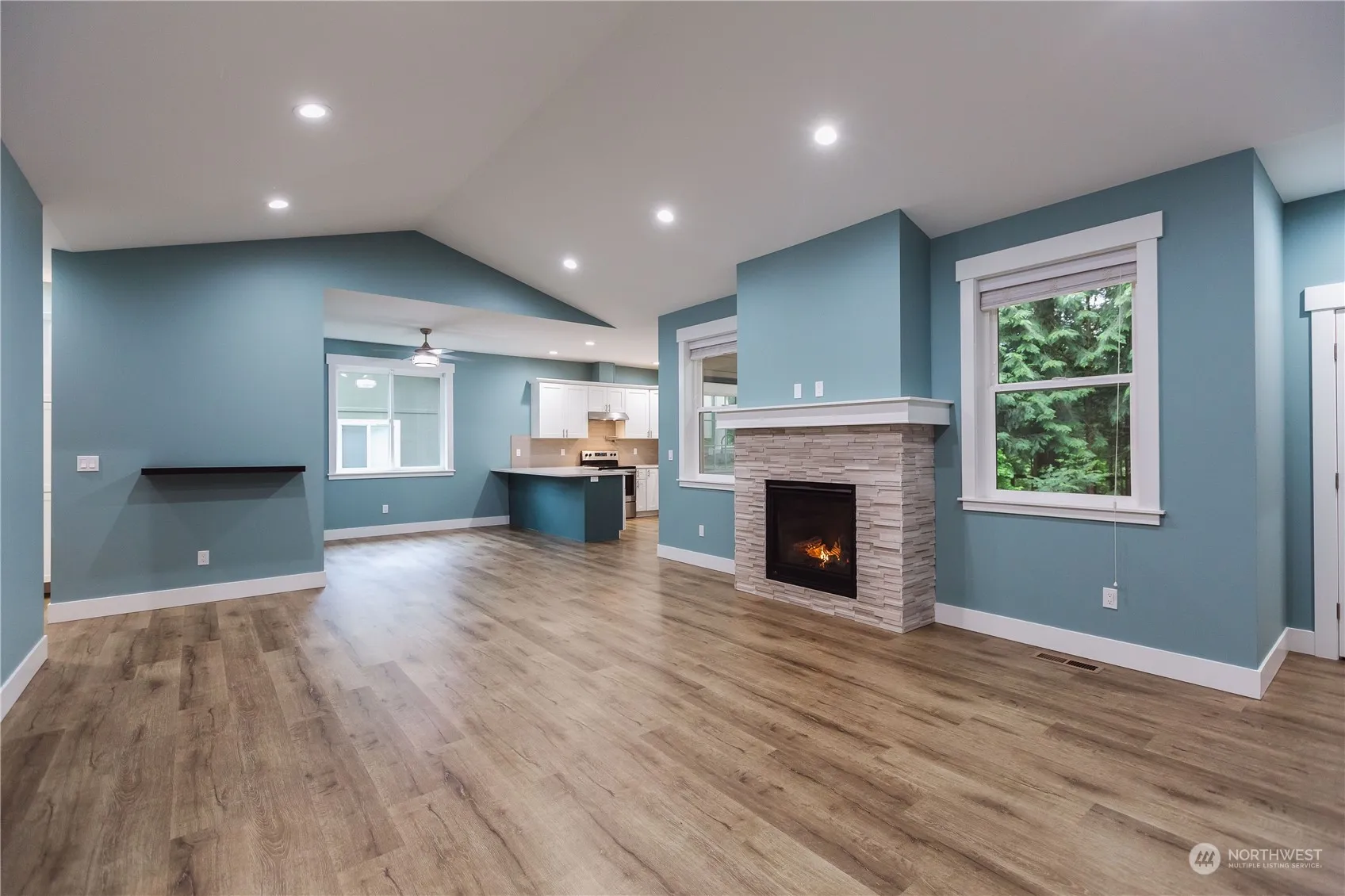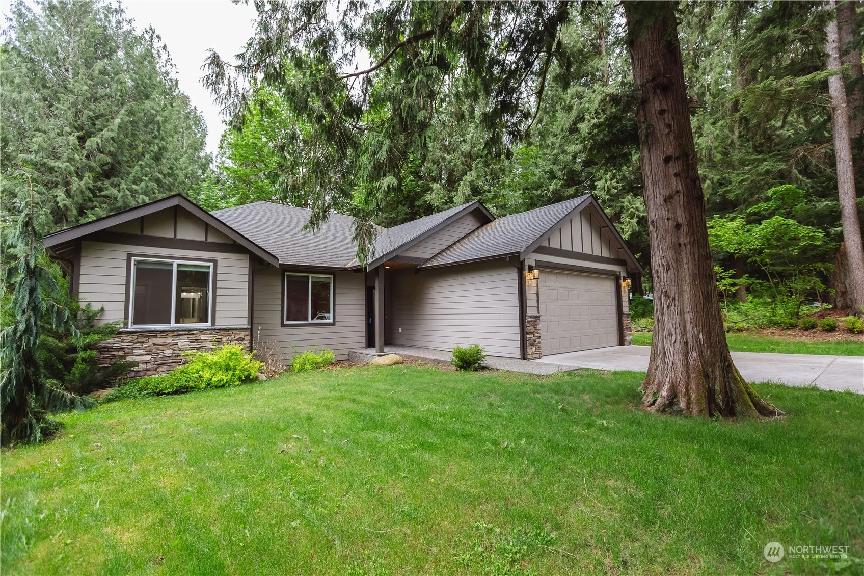 Soak in the nature in this beautiful, nearly new home with high end finishes, tons of extra features, and owner improvements. Open floor plan with vaulted ceilings, solar tubes for extra natural light, and cozy gas fireplace with natural stone. Kitchen has white shaker cabinets with quartz countertops, tile backsplash, all stainless steel appliances, even a pot filler. Spacious master, ensuite master bath, tile shower, double vanity, and a walk-in closet. Kitchen leads to the large covered deck with tongue and groove ceiling to enjoy the trees and peekaboo views of Kendall Lake while grilling and relaxing. Cement board siding, house wired for generator, lifetime warranty leaf guards on gutters, this place is dialed! A fantastic opportunity