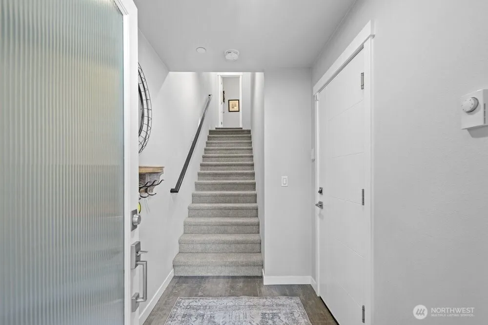 Nestled in Edmonds’ Esperance neighborhood, this modern 2-bedroom townhome offers light-filled living with a thoughtful open-concept design and contemporary finishes throughout. Built in 2019, the main level features hardwood floors, an office nook, electric fireplace, and seamless access to the deck for easy indoor-outdoor living. The sleek kitchen is finished with Bellmont dual-tone flat-panel cabinetry in white and taupe wood, quartz countertops, a center island with seating, and stainless-steel appliances. Mini split heat pumps throughout provide efficient year-round heating and cooling. Upstairs, both bedrooms feature en-suite baths and walk-in closets, including a spacious primary suite with dual sinks and a large walk-in shower. Enjoy the added bonus of a private fenced community dog park, all just minutes to Edmonds Bowl, schools, Costco, the Mountlake Terrace Light Rail Station, and I-5.