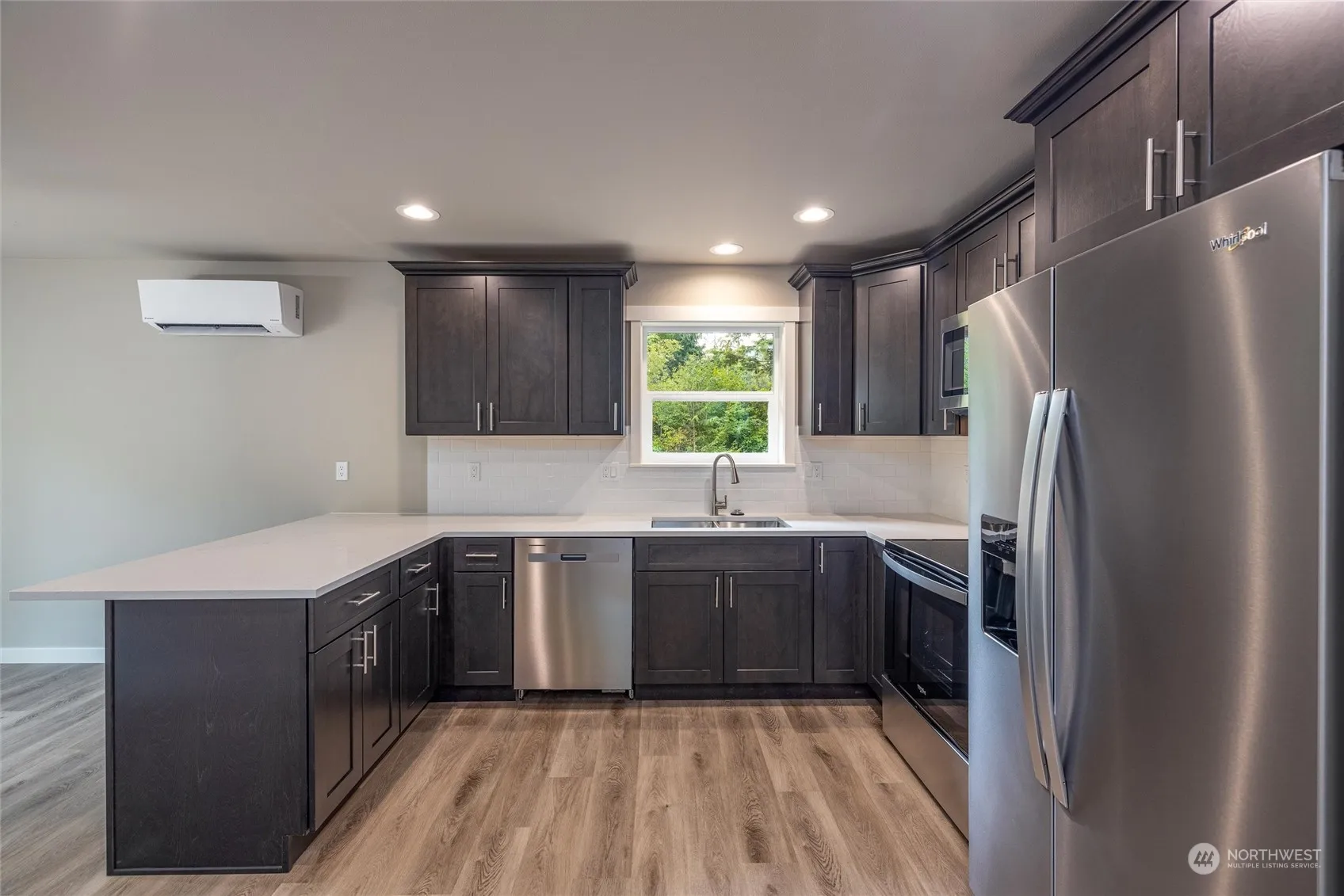 BRAND NEW, quality built, 3 bedroom, 2 bathroom home with double car garage at the end of a cul-de-sac. Features include luxury vinyl plank flooring throughout, stainless appliances, quartz counter tops, tile backsplash, dual sinks in primary bathroom, mini-split unit that provides low cost heating with the benefits of A/C. Spacious kitchen with shaker style quality soft close cabinets and a nice patio off the dining area. Brand new 3 bedroom septic system! No HOA. Large back yard and backs up to a greenbelt space. Enjoy a brand new home about a 35 minute drive from Bellingham. Home is finished! One year builder warranty included and garage has plug for electric car charging!