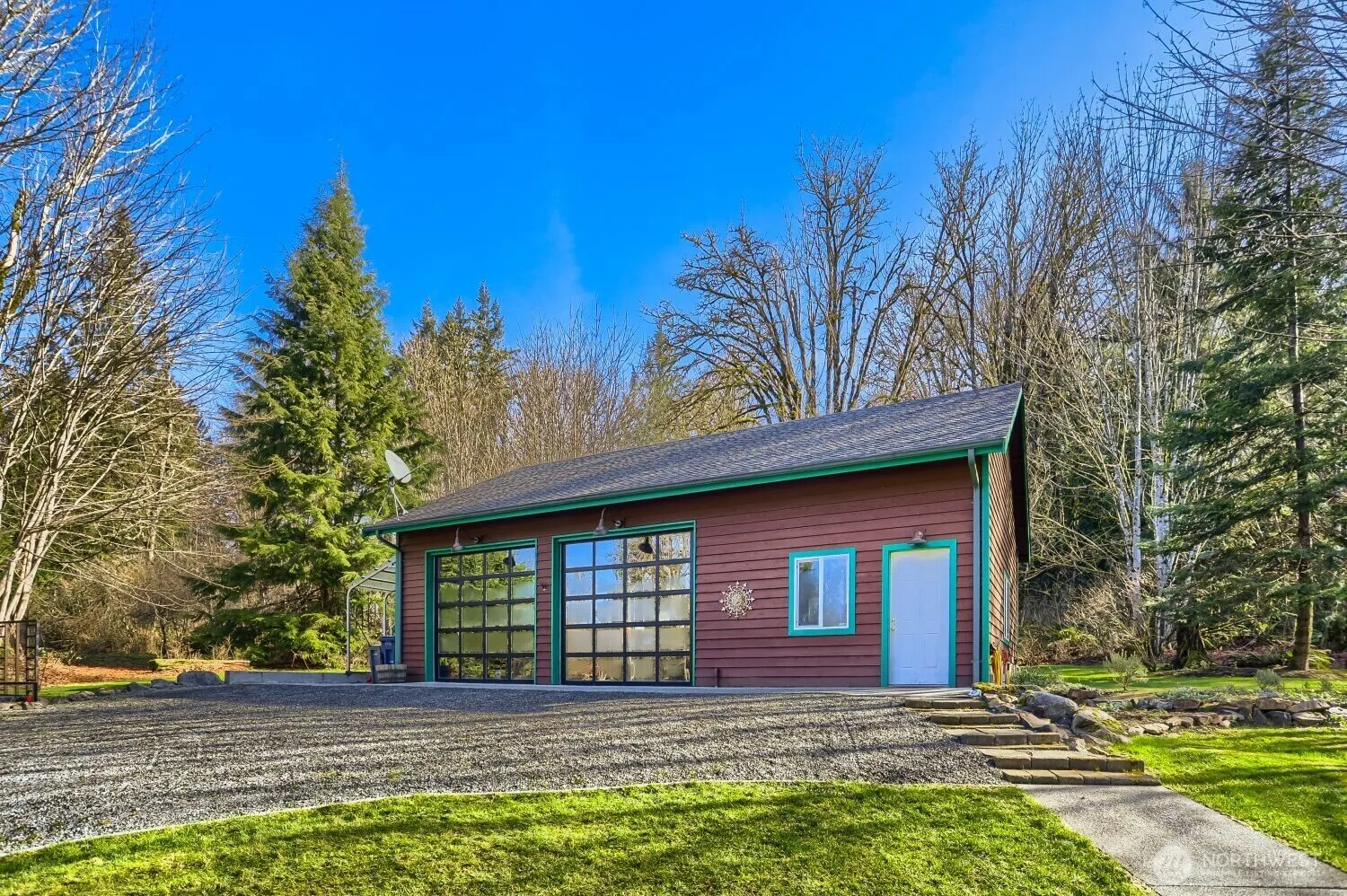 A country lane leads to a one level 3 bedroom retreat on 5 acres. Only 12 miles from Woodinville & 24 miles from Bellevue but you would think you were in a sanctuary far, far away! Vaulted ceilings & Skylights enhance the living room & kitchen. Prime suite with soaking tub & separate shower. French doors open to a large trek deck w/ awning overlooking meadow & garden. Plus 1,200 sq. ft. garage features oversized tinted double pane glass & steel doors let in an enormous amount of natural light, high ceilings & attached carport. Originally designed with an ADU in mind, plumbed for radiant floors, bath w/ separate drain field, & 220 power. Plywood protected garage floor has a solid cement pad underneath. Behind garage, wired for wood-burning boiler, unfinished deck & pond. Not to be missed: Leaf Guard on gutters, Guardian Generator kicks on automatically, new roof installed in 2022, area for motor home with 220 hookup & clean out drain connected to septic tank. New kitchen hardwood floors. Electric venting in attic. Well pump replaced in 2024 & has purification system to prevent mineral stains & recently test for purity. 7 hydrants throughout property providing water. 8 mature fruit trees. A well loved home highly maintained. Bring your imagination.