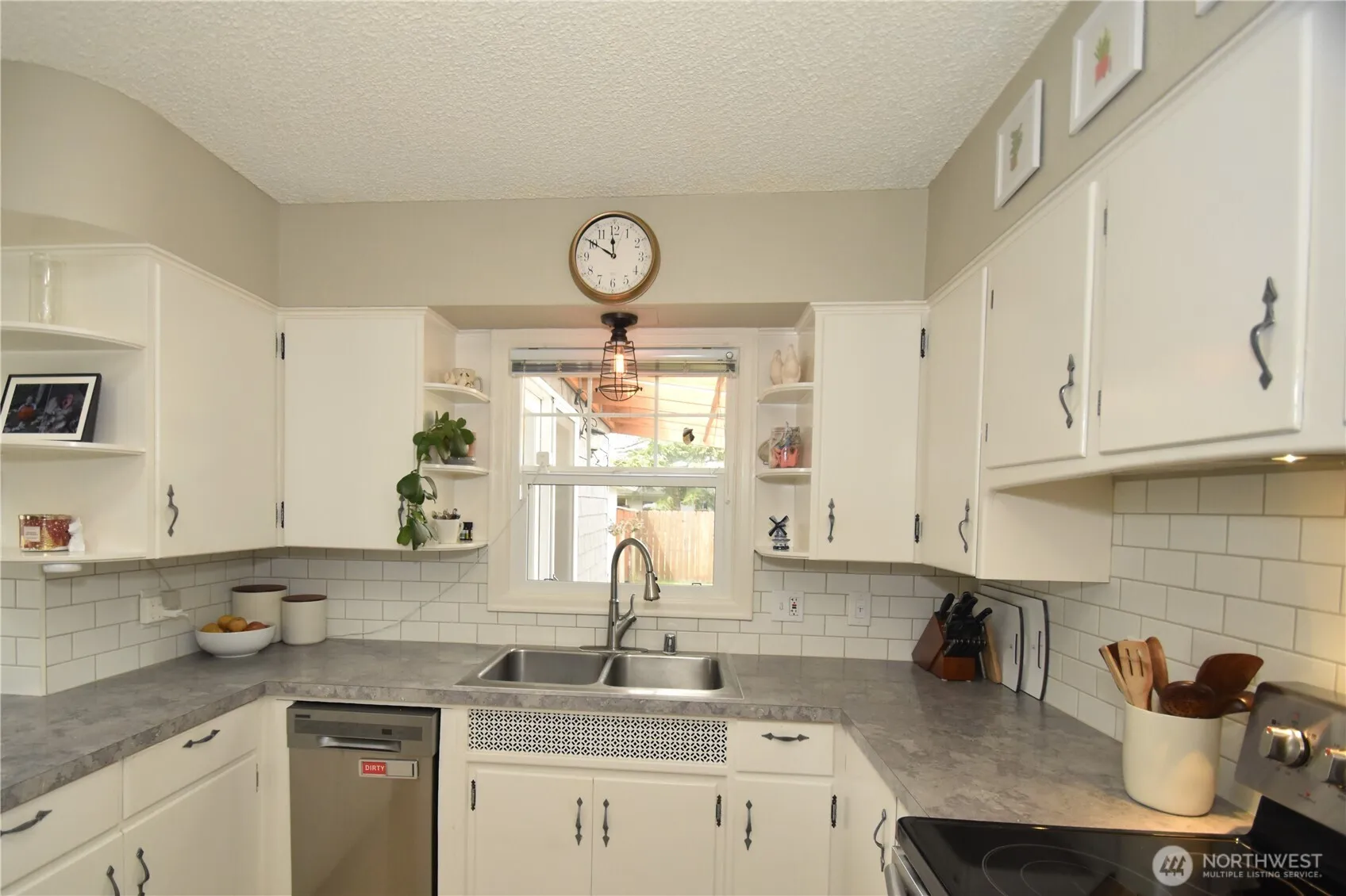 Welcome to this move-in-ready rambler! Located close to town with three bedrooms, full bath, & 1,100 sq ft. Sits on a spacious corner lot. Large living room with corner windows to let light in. Kitchen is nice with ample counter space and cabinets. Eating area has space and larger window for more light. Laundry room has access to composite deck and backyard. Enjoy natural gas furnace, water heater, & Central Air Conditioning! Large garage has work area. Covered RV carport has RV hookups for power, water, & waste disposal. In ground automatic sprinkler system. Custom hardwood Dutch door, original brick fireplace converted to gas for your comfort. Yard has established blueberries, raspberries, grapes, rhubarb, asparagus, & raised garden beds. There is a good sized shed on the side of the garage for more storage. Internet Wired for Ziply Fiber and Comcast/Xfinity. TV Wall Mount included. Close to library, Front Street Shopping, Edaleen Dairy, & fire station.