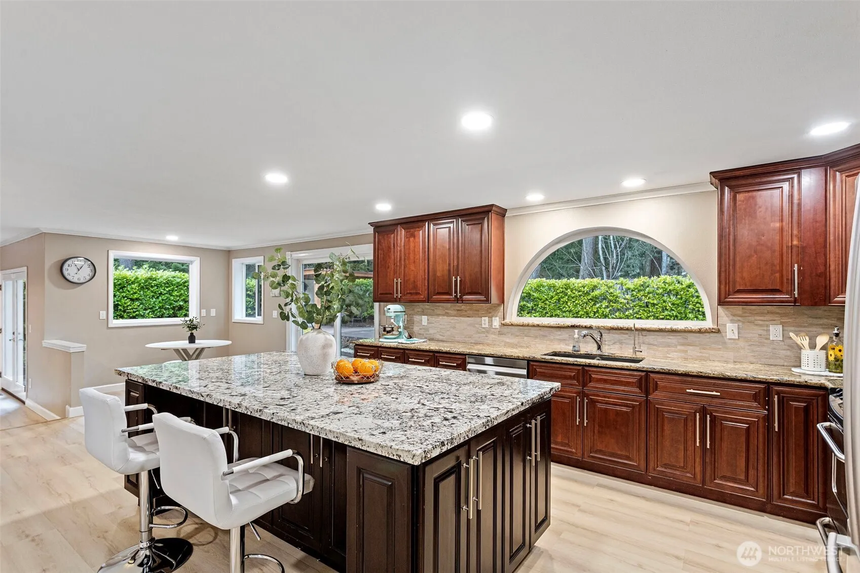 Beautifully updated single-family home in a prime Mill Creek location! Recently refreshed with new exterior paint, a newly finished back deck, and luxury vinyl plank (LVP) flooring throughout, this home is truly move-in ready and designed for modern living.The bright living room features vaulted ceilings, creating an open and airy atmosphere filled with natural light. The spacious kitchen is perfect for entertaining, showcasing a huge center island, upgraded kitchen vent, generous counter space, and a functional layout that flows seamlessly into the main living areas. Step outside to the finished back deck, ideal for summer BBQs, morning coffee, or relaxing evenings.Located just minutes from shopping, dining, scenic trails, parks, and Mill Creek Town Center, this home offers the perfect blend of comfort, style, and convenience with easy access to major commuter routes. A fantastic opportunity to own a beautifully updated home in desirable Mill Creek Country Golf community with top-rated schools!