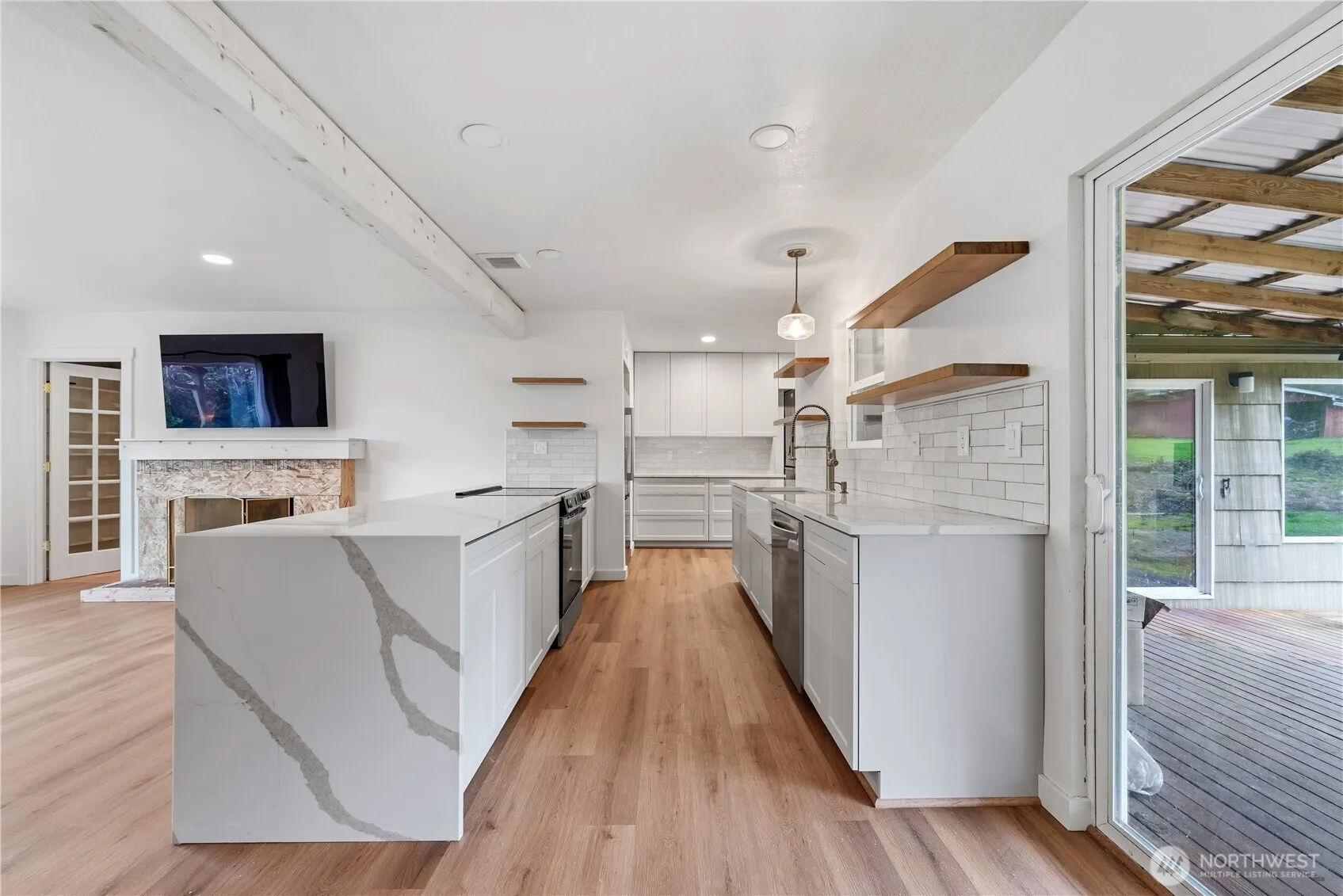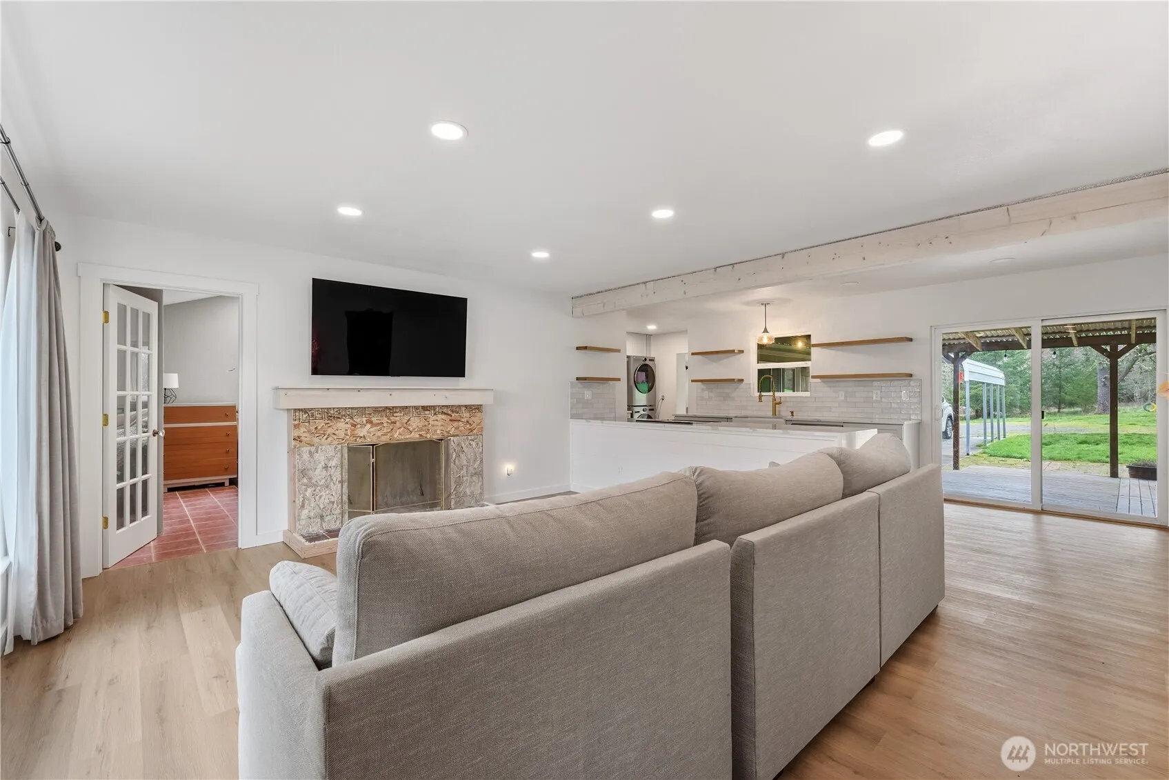 Rose Valley home ready for new owner! 3 bedroom, 1.75 bath home with living room & family room. Beautiful kitchen remodel! Primary bedroom with attached bath with shower plus 2 additional bedrooms. Just needs someone to come put the finishing touches on it! Seller will leave supplies to finish fireplace surround and flooring already purchased for the 2 bedrooms with hardwoods. Covered deck, storage room. 2 car carport. Large barn. Heat pump. Come take a look today!