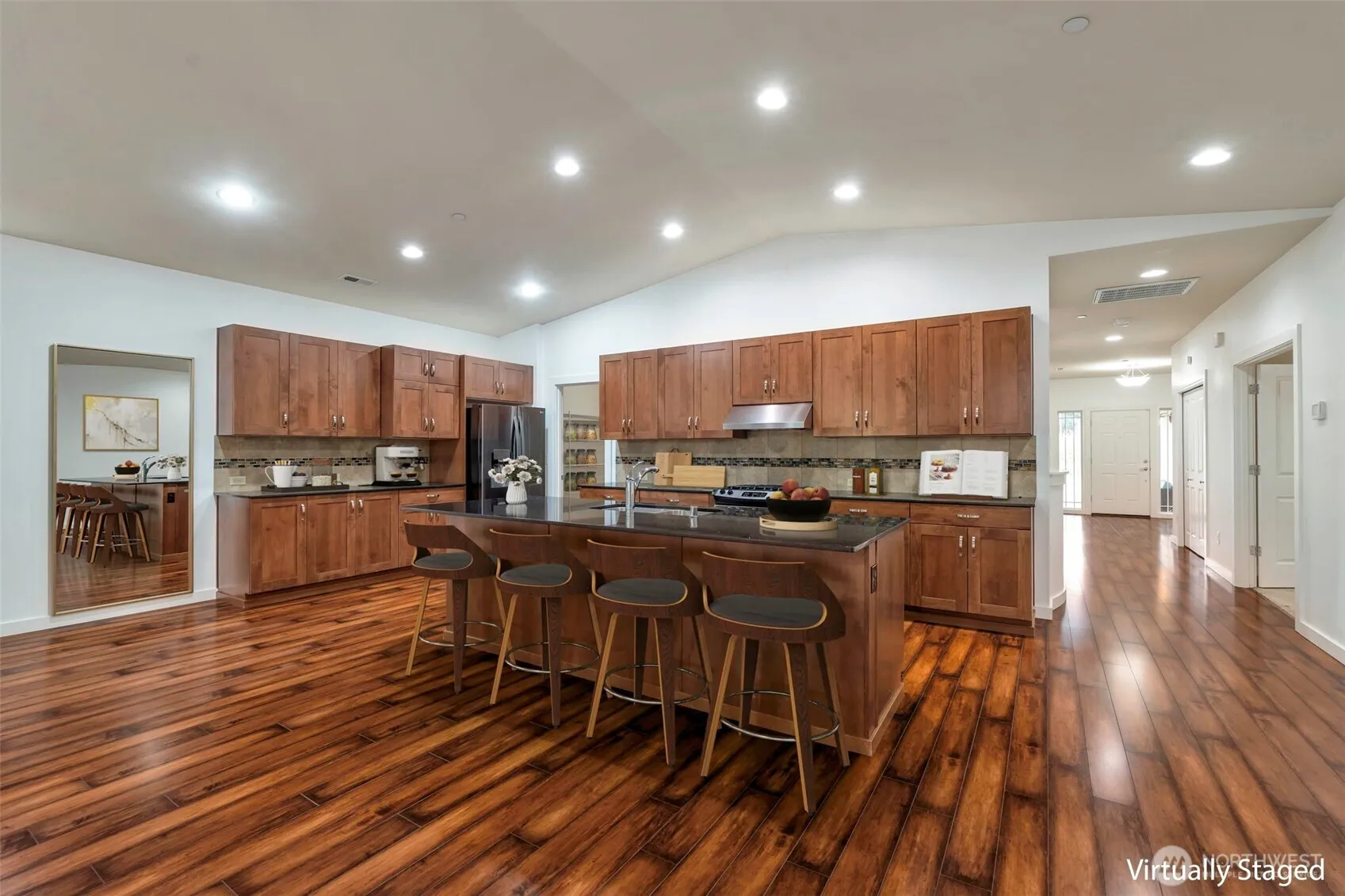 Gorgeous and impeccably maintained Craftsman RAMBLER tucked on a quiet cul-de-sac in desirable Wood Grove at Fairwood. Situated on an approximately 7,500 sq ft lot, this light-filled 3 bed + den, 2.5 bath home features vaulted ceilings, rich hardwood floors, abundant windows, and a cozy gas fireplace. Open-concept layout with gourmet kitchen offering granite countertops, expansive island, stainless steel appliances, and walk-in pantry. Spacious primary suite with sitting area, walk-in closet, and five-piece bath. French doors lead to den/office. Fully fenced, beautifully landscaped backyard backs to greenbelt with covered patio for year-round enjoyment. Central A/C, two-car garage, and just a short stroll to park and trails. A private, move-in ready retreat!