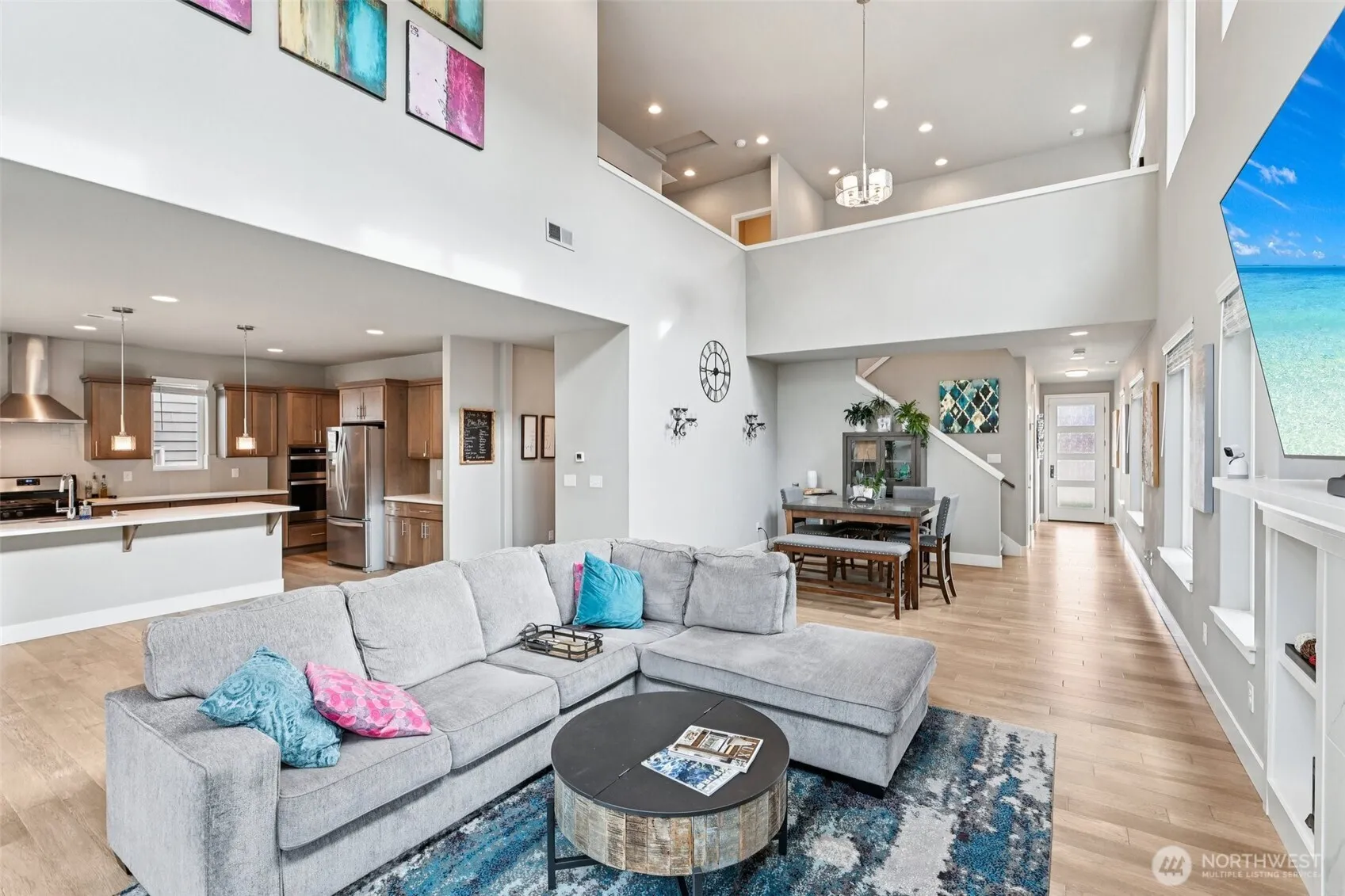 Located in the desirable Tehaleh area, this turn-key home is move-in ready and filled with natural light. Soaring ceilings in the living room create a stunning first impression, while the open-concept main floor offers seamless flow for everyday living and entertaining. A dedicated office or flex space with a nearby half bath provides versatility for work or hobbies. Open kitchen with large island, double oven, gas range and walk in pantry. The main level also features a mud room and convenient laundry, all designed with functionality in mind. An attached two-car garage adds everyday ease. Upstairs, you’ll find three spacious bedrooms, including an expansive primary suite with a five-piece en suite bath and a large walk-in closet. The fully fenced backyard is level and beautifully landscaped, offering plenty of room to relax or play. Enjoy year-round outdoor living under the covered patio complete with a cozy gas fireplace—perfect for gatherings in every season. Surrounded by trails, parks, and community amenities, this home blends comfort, style, and location.