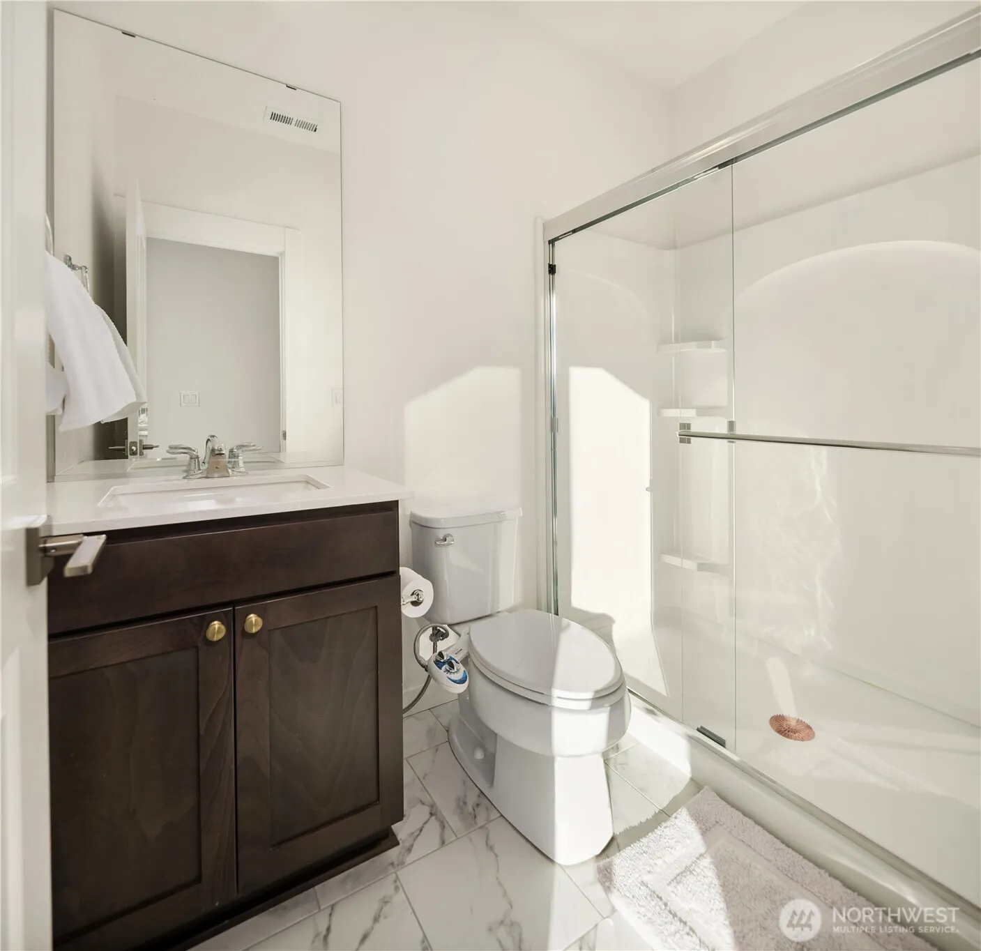 Tucked into the sought-after 220 Towns at Canyon Park, this end-unit townhome stands out for what buyers notice first- massive windows and incredible all-day natural light that fill the home from morning to evening. The tree-lined boulevard approach and proximity to the community’s expansive park create a welcoming, peaceful setting, while freeway access just minutes away keeps everything convenient. Built by Toll Brothers and thoughtfully upgraded throughout, the popular Inglewood Elite floor plan offers 4 bedrooms and 3.5 baths with soaring 9-foot ceilings and a bright, open-concept great room centered around the fireplace. The gourmet kitchen and dining area flow seamlessly to a covered balcony, ideal for everyday living and entertaining. The lower level features a private guest suite and access to the 2-car garage, while outside a fully fenced ‘just big enough’ yard provides the perfect space for a pup or gardening. Just steps from the large community park and located within the acclaimed Northshore School District, this home blends light, layout, location, and lifestyle in one of Bothell’s most desirable communities.