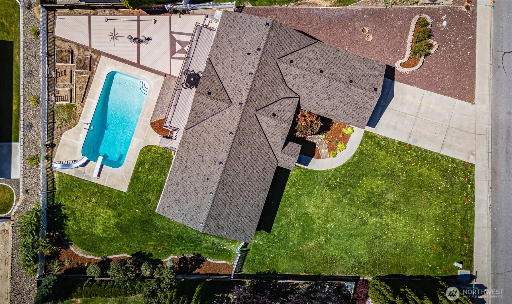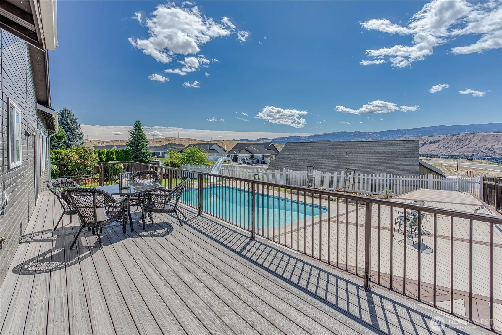 Beautifully updated Fancher Heights rambler with over 2,000 sq. ft., move-in ready and brimming with upgrades. A brand-new Trex entertainment deck showcases mountain and valley views, while the expansive deck area and sparkling in-ground pool create the ultimate summer retreat. Recent improvements include a new roof, fresh interior/exterior paint, and luxury vinyl flooring. The open kitchen with island flows seamlessly into the family room for easy entertaining. The primary suite offers a walk-in closet and spacious bath with double vanity, soaking tub, and separate shower. Flexible layout with 4 bedrooms or 3 bedrooms plus den with closet. Stay cool during the warmer months with central A/C. Home has been pre-inspected for peace of mind.