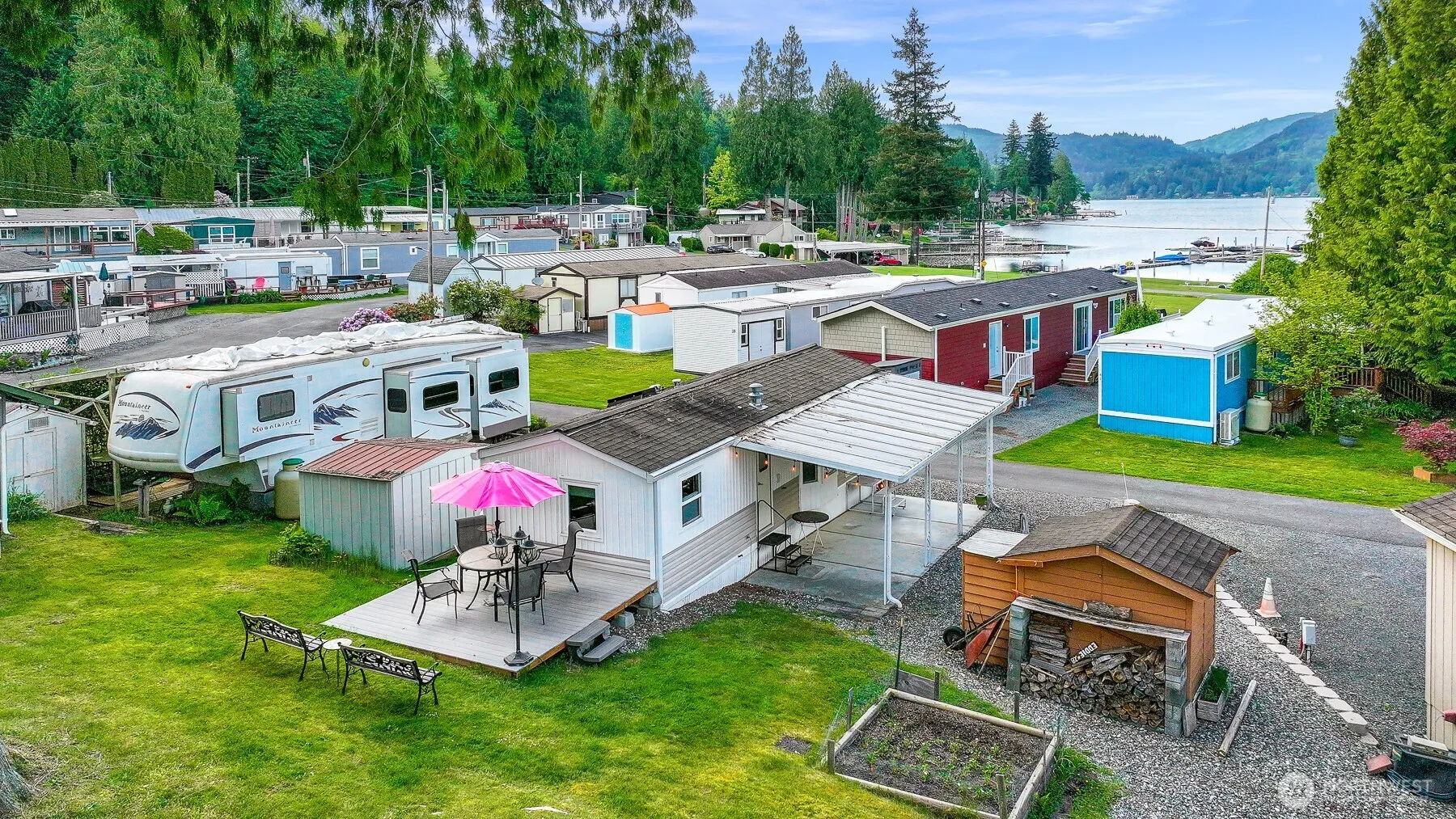 Experience lakeside living in this charming park model home nestled in the sought-after Calmor Cove Community on Lake Samish. This cozy retreat offers the perfect blend of comfort, functionality and serene natural beauty. Ideal for full-time living or a peaceful weekend retreat, with a smart, efficient layout and a welcoming interior. Relax on your back deck just steps from the lake, and enjoy access to a private beach and shared dock. Perfect for swimming, kayacking, or simply soaking in the views. Calmor Cove is a very special, well-maintained community just minutes from I-5 and all that Bellingham has to offer. A rare chance to own affordable, low-maintenance lake property in one of the most beautiful corners of the PNW!