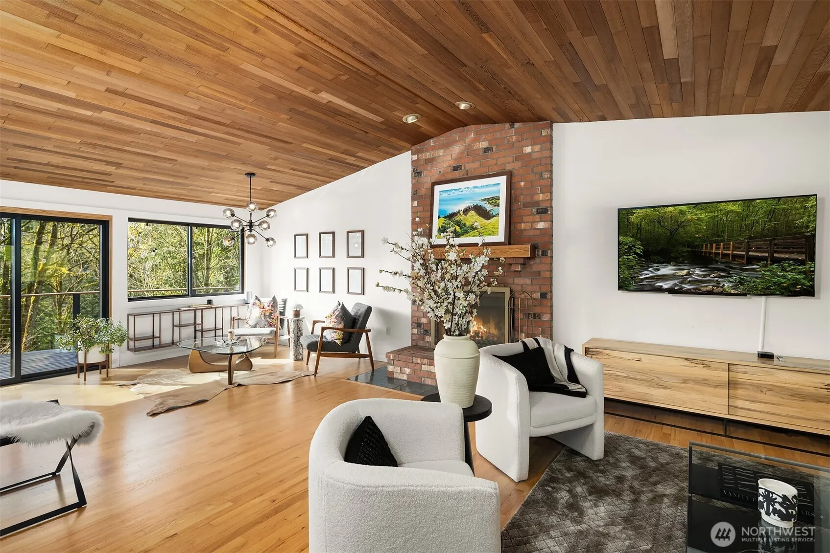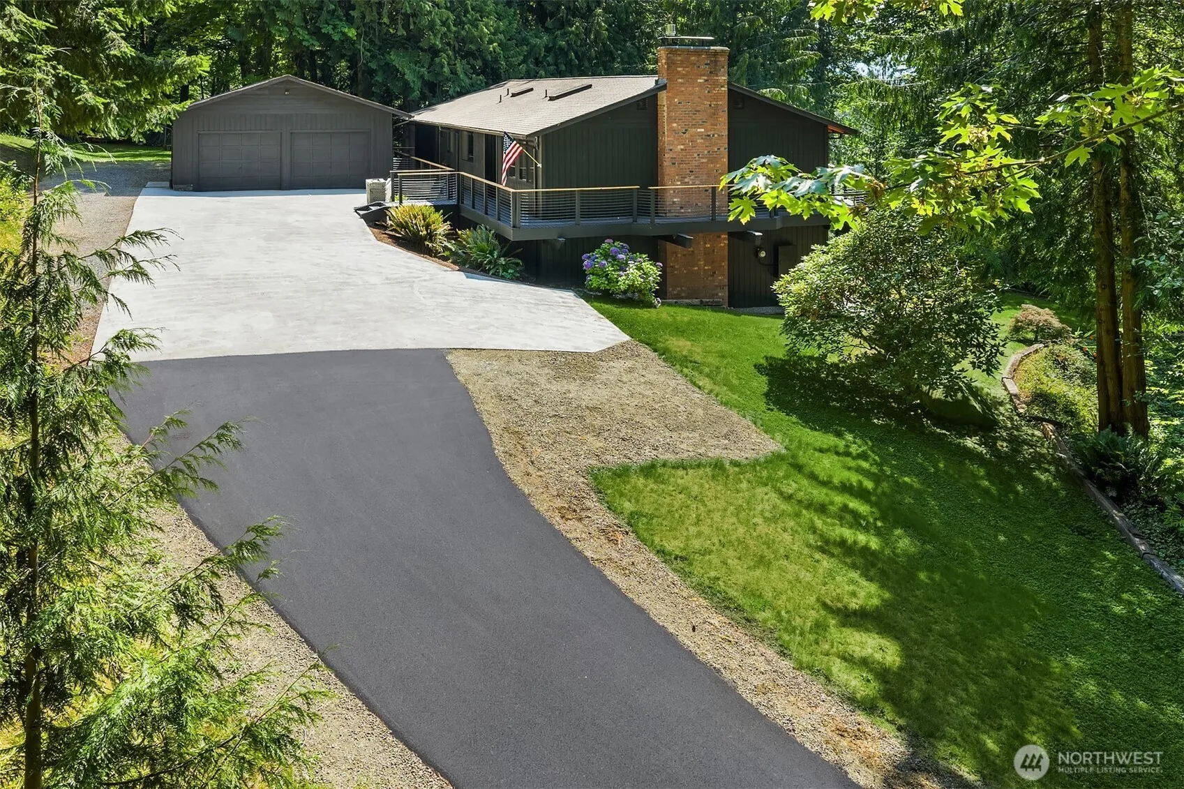 Follow the newly paved road to your peaceful getaway, surrounded by 2.73 acres of trees and open space. This 3,120 sq ft home offers 4 beds and 2.5 baths, giving you plenty of room to grow and make it your own. The main level feels light and open, with cedar-wrapped vaulted ceilings and big windows that bring the outdoors in. The kitchen looks out over the trees—perfect for enjoying your morning coffee or cooking dinner while watching the sunset. The primary suite opens to a wrap-around deck, a great spot to relax and unwind. Downstairs you’ll find a large bonus room, a second kitchen, and a cozy office with a fireplace—ideal for working from home or movie nights. Outside, gather around the firepit with friends under the stars. Welcome home