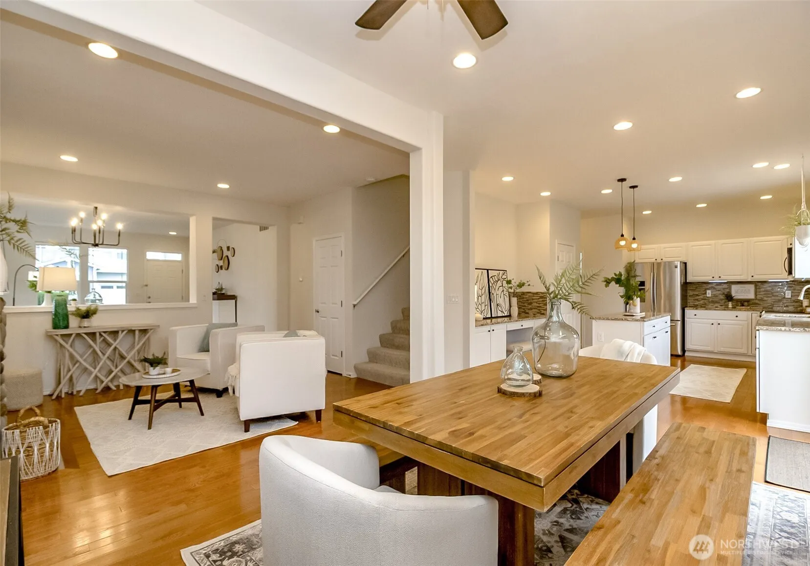 Best priced home in the area!!! This tastefully remodeled 5-bedroom or 4 bedroom & Den, 2.5-bathroom, east-facing corner lot home is located near parks, schools, and trails. As you walk into the lovely home, you will notice all of the natural light throughout. The home features beautiful hardwood floors and new carpet throughout. The large cook’s kitchen features slab granite countertops, a tile backsplash, a kitchen island, stainless steel appliances, an undermount sink, and plenty of cabinet space for that much-needed storage. Upstairs, the primary suite has vaulted ceilings and a sitting area to read a book or just sit and relax before bed. The updated five-piece primary bathroom has new quartz countertops, dual undermount sinks, LVP tile flooring, a walk-in closet, a skylight, and a soaking tub. There are four additional large bedrooms that share the updated main bath, which has new quartz countertops, undermount sinks, and new LVP tile flooring. The fully fenced, sun-drenched, and secluded backyard has a new entertainment-sized deck that is great for summer BBQs or entertaining large gatherings. All of these amazing features, along with a new roof, hot water tank, furnace, and EV wiring, make this home truly exceptional. The sellers are Motivated!!!