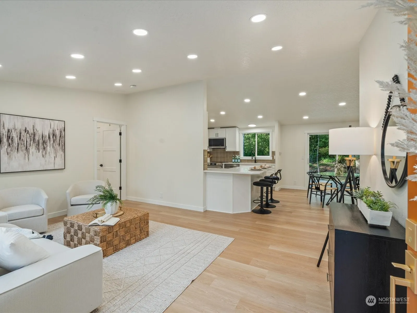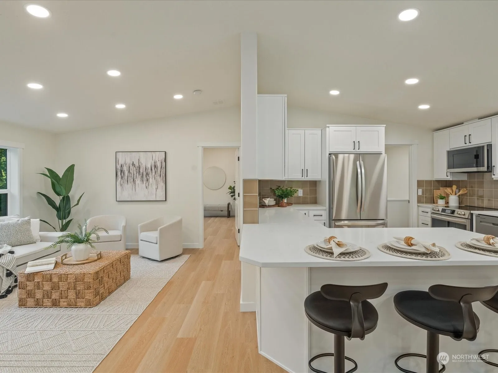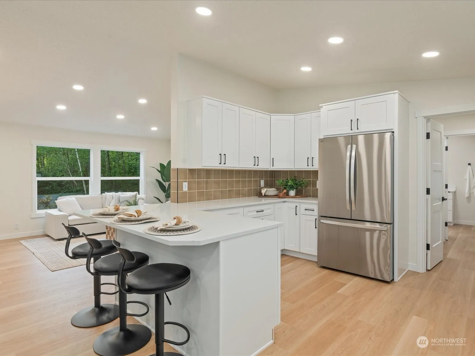Introducing a stunning 5-acre secluded retreat in Blaine! Immaculately remodeled with meticulous attention to detail, this property boasts all-new cabinetry, quartz countertops, and lavish tile. Vaulted ceilings enhance the sense of space, while the large master bedroom offers his and her sinks and a walk-in closet. Enjoy one-level living, whether you’re cozying up by the wood-burning stove or entertaining guests in your newly hydro-seeded lot. Luxury abounds with fully tiled baths featuring exquisite gold and matte black hardware, stunning interior and exterior paint, a brand-new roof, and freshly finished decks. Explore the just shy 5-acre lot with roundabout parking and a sizeable shed. Come check out this luxurious hideaway in Blaine!