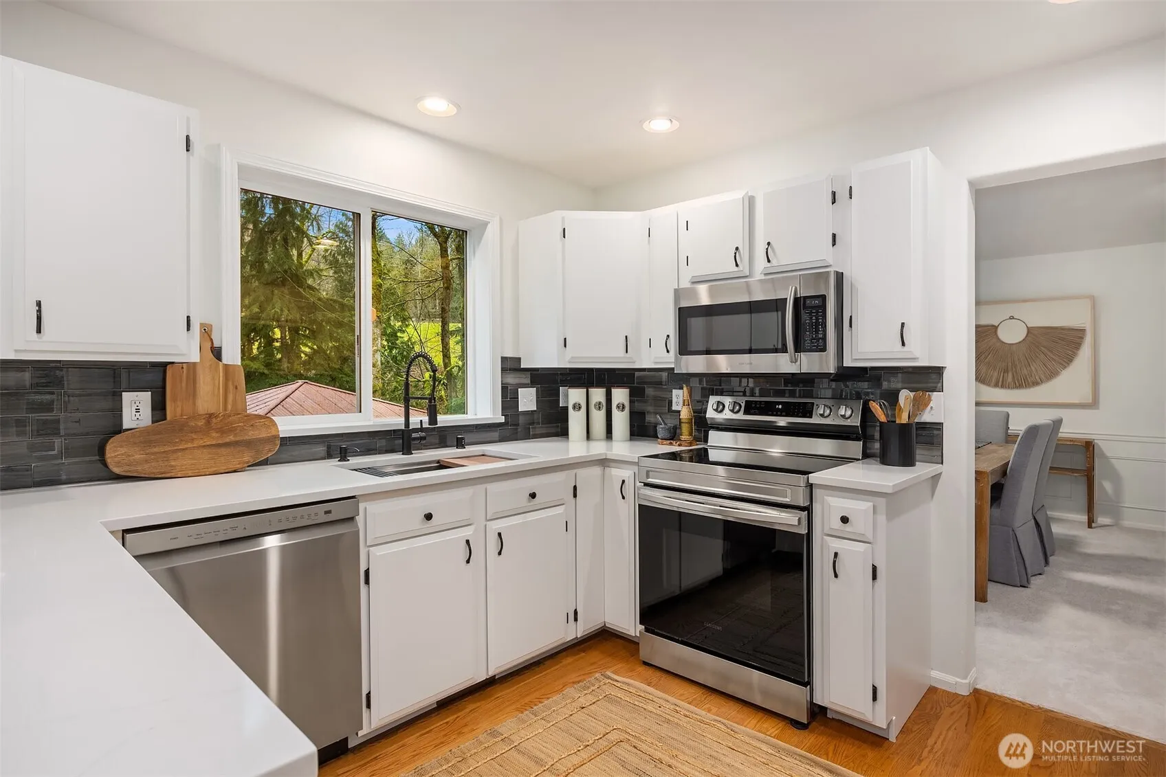 A distinctive home and the ultimate retreat in the private community of Four Lakes in Issaquah. Nestled on a mountainside homesite spanning 1.07 acres of complete peace and tranquility, this property offers an incredibly warm and inviting interior with space for everyone. Brand-new carpet, fresh paint throughout, new door hardware, and updated lighting. Upgraded kitchen features a quaint bay window breakfast nook and has been refreshed with designer lighting, SS appliances + new dishwasher. Styled bathrooms feature new sinks, fixtures, flooring, hardware and designer lighting. Primary suite overlooks a natural preserve and features an en-suite bath with a new shower door, updated fixtures and a new sink with updated faucets. Huge bonus room provides flexible space for a media room, playroom, or additional bedroom. Functionality continues throughout the home with a built-in desk in the office area and barn-style sliding door designed to maximize space and style. Awesome lower level w/ separate entrance and digital keypad access, making it ideal for guests, multigenerational living, or private workspace. Additional upgrades include a Google smart thermostat, 2 exterior Google cameras, and backup diesel generator for added peace of mind. Expansive backyard deck was freshly painted & stained in summer 2025, with added lighting to enhance evening gatherings. Brand-new septic tank installed in February 2026. A rare offering you won’t want to miss—it’s perfect!