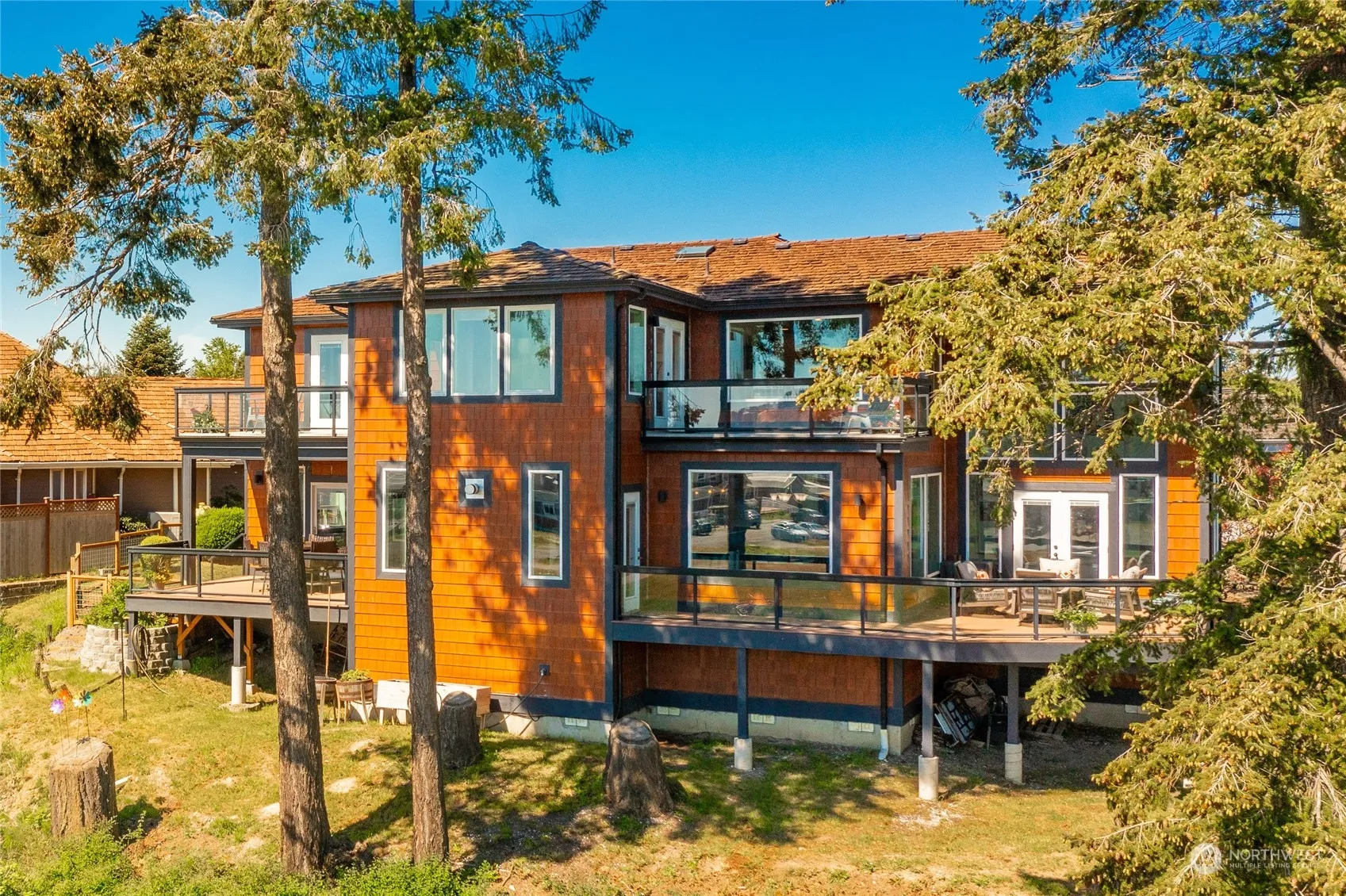 Discover coastal living at its finest in this stunning 4-bed, 3.5-bath custom home in the exclusive gated SeaLinks community. Spanning 4,139 sf, this home offers breathtaking bay, island, mountain, and sunset views. Enjoy two primary bedrooms with en suite bathrooms on separate levels. Three of the four bedrooms feature ocean-facing decks. Designed for functionality and entertainment, the home boasts expansive living areas, an open-concept main floor, and an entirely new kitchen. The versatile layout includes a spacious living room, a rec./pool room with wet bar, bonus room, and den/office. A roomy garage adds convenience, and the prime location atop Birch Bay is within walking distance of all local attractions. See 3D Tour & Floorplan!