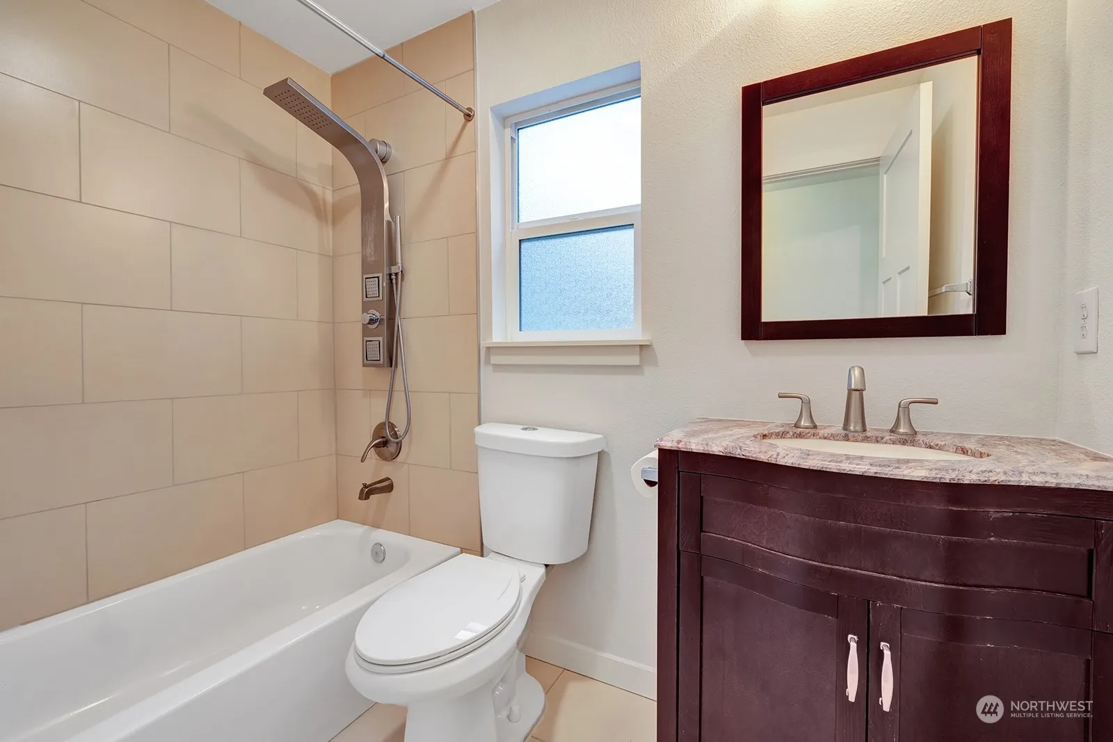 Welcome home to this beautifully remodeled 3 bed 2 bath house with stunning views of the Renton skyline! When you enter you are greeted by new waterproof flooring, recessed lighting, new paint & updated millworks! The kitchen boasts updated cabinets, granite counters, mosaic tile backsplash & SS appliances. Continue through & you will see the new flooring span through the entire upstairs into the bedrooms. Both full bathrooms have upgraded vanities, tile flooring & tiled shower surrounds! Downstairs you will find brand new carpet in large family room & spacious primary bedroom w/walk in closet. Huge front deck has breathtaking views of mountains, city skyline & sunrises on the horizon! Rooftop solar panels installed & EV car charger ready!