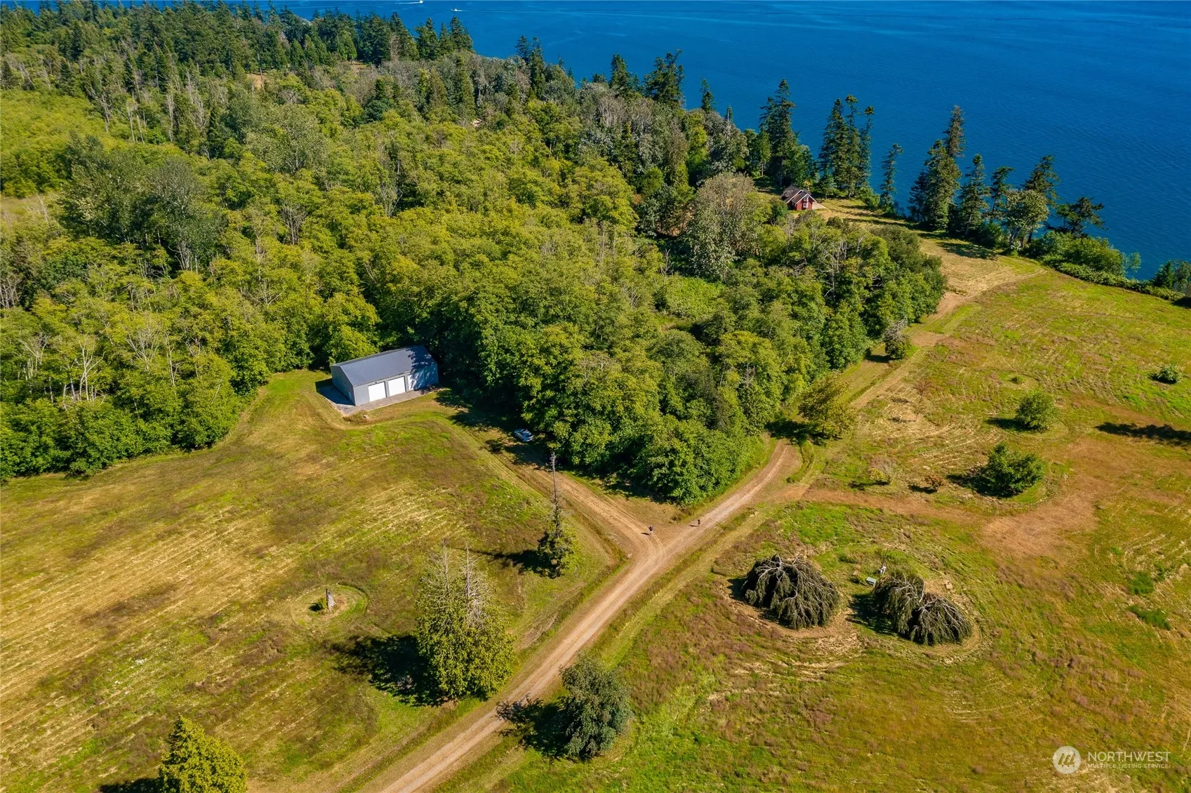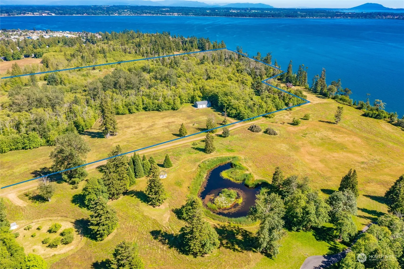 Fantastic opportunity with south facing 24 +/- acre property with 325’+ of high bank waterfront is simply optimal for creating a true waterfront retreat. Currently in 2 tax parcels inclusive of a 19.6 acre parcel with a large 2,400 sf shop perfect for a car collection, boat storage, RV, or hobby shop and a 4.5 acre wooded, waterfront parcel #4051272744940000. Eagle, deer and other native wildlife move freely about the property. Take in the views of the Georgia Strait, San Juan Island, and Canada. Minutes to world class golfing, marinas, dining, and shopping. R5A zoning allows for many building or compound opportunities. Embrace the potential.