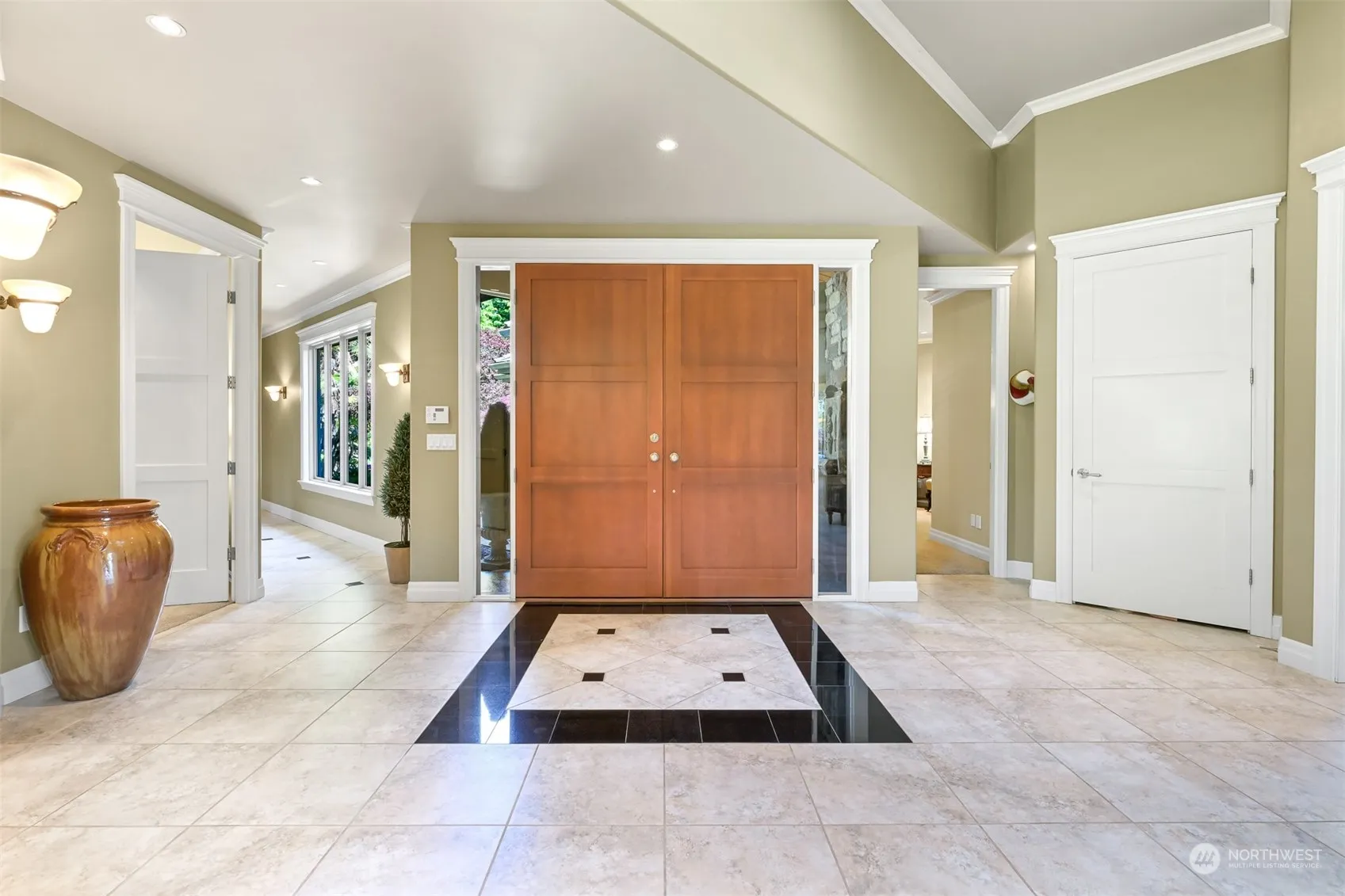 Pristine custom Craftsman home designed for entertaining & aging-in-place. The home is situated on one of the most desireable lots on Semiahmoo Golf Course, due to its prime location at the end of a cul-de-sac with over 300′ of golf course frontage along two sides of the 1/3+ acre lot. View of the 9th green & pond from the back patio. Directly access the first tee box, clubhouse, pool & sport courts! Low-maintenance perennial gardens. No detail overlooked in the thoughtful floor plan. All primary living spaces are on the main level, plus 1000+ sqft upstairs: Bonus room, office/gym, wet bar, 200+ bottle climate-controlled wine closet and storage room. Tall, elegant coffered ceilings with accent lighting, wide hallways and 36″ wide doorways.
