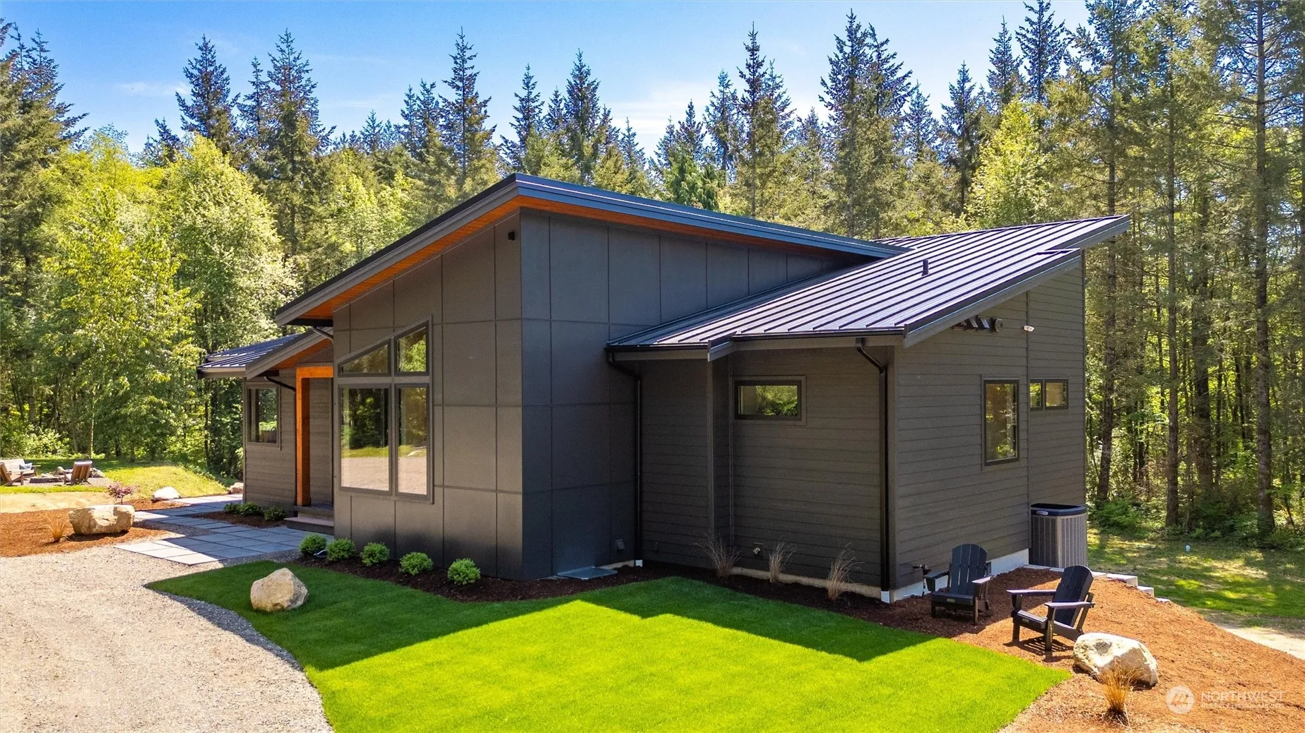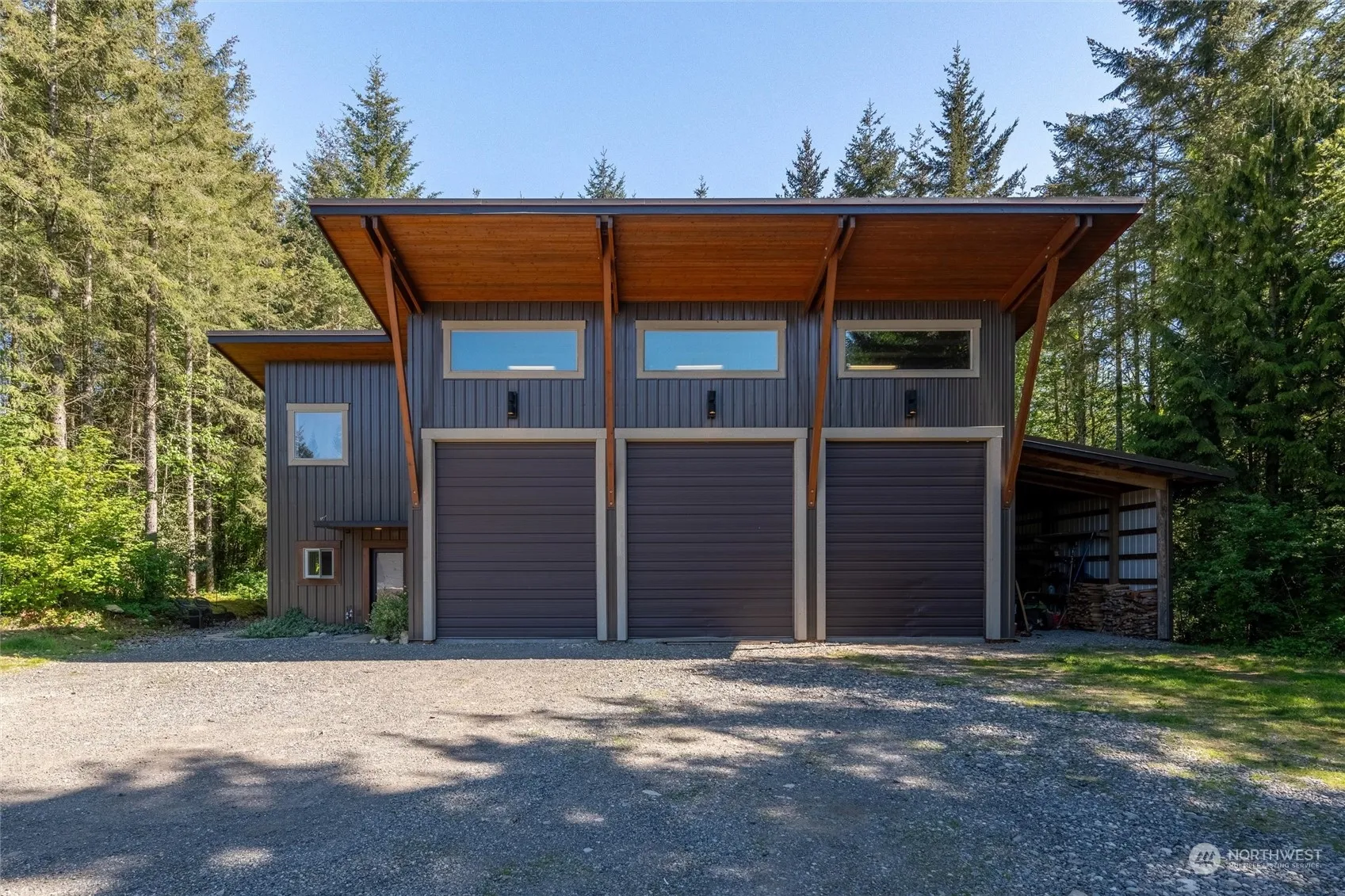 Newly constructed PNW contemporary masterpiece offers a perfect blend of luxury & comfort. Stunning architecture, upscale features & high-end finishes throughout. Located on nearly 5 private acres inside the beautiful gated neighborhood of Sherwood Estates. This home was designed to impress with no detail overlooked. You’ll fall in love with the massive windows, cedar vaulted ceilings & exposed beams, dramatic fireplace, luxurious primary suite, & an absolute dream kitchen! Expansive covered deck & picturesque outdoor spaces. High efficient components, including Solar. The detached 3 bay shop is just as impressive. 14′ doors, & room for all of your toys. Just off the shop is a fantastic two story, 1bd/1bath detached ADU potential. Must See!