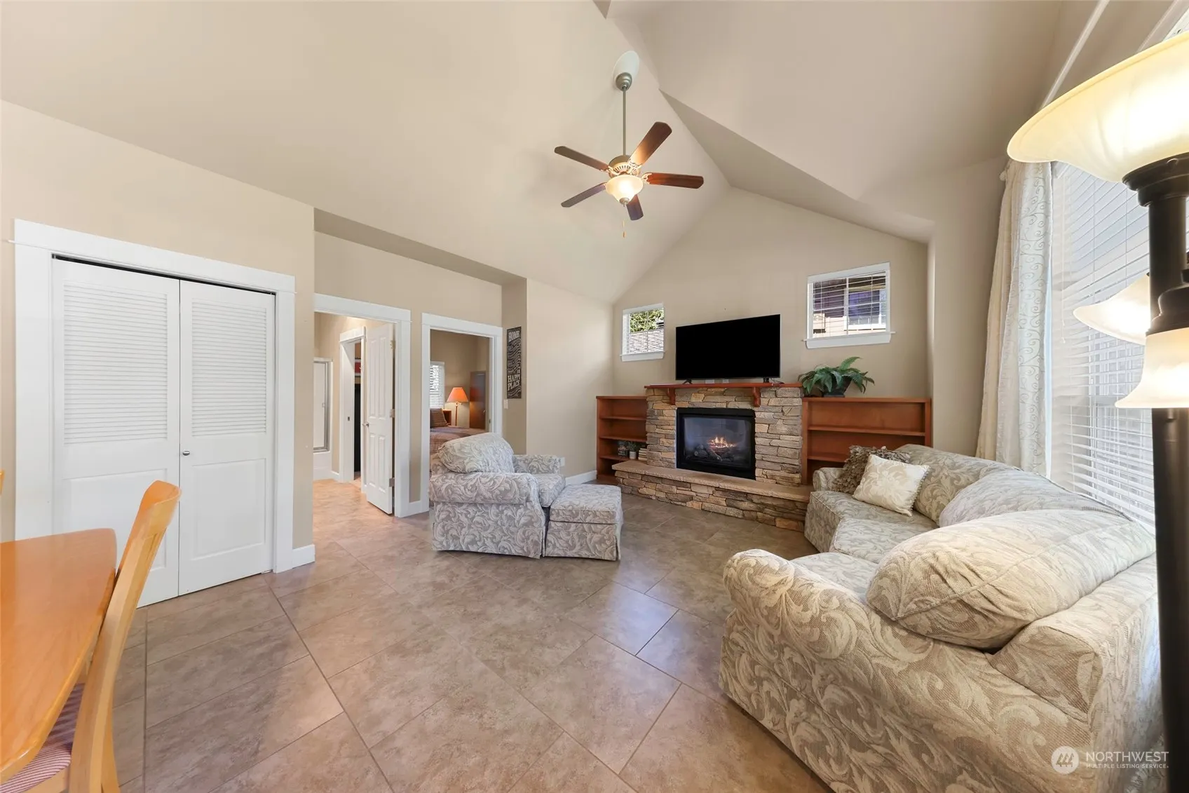 Enjoy the enviable seaside living of Birch Bay! Close proximity to the beach, this single level, two bedroom, two bathroom craftsman has it all! Bright open windows, vaulted ceilings, plenty of closets including a walk in for the primary bedroom. Galley kitchen includes stainless appliances and sitting space with bar stools surrounding island style counter. The Tides community is nestled into a hillside overlooking the Bay, with sought after amenities such as swimming pool, hot tub, and a community center. Plenty of parking in private drive carport, with convenient entry to spacious storage room with steps to attic space for even more! Just a few minutes to the Canadian/US border for world class dining and entertainment!